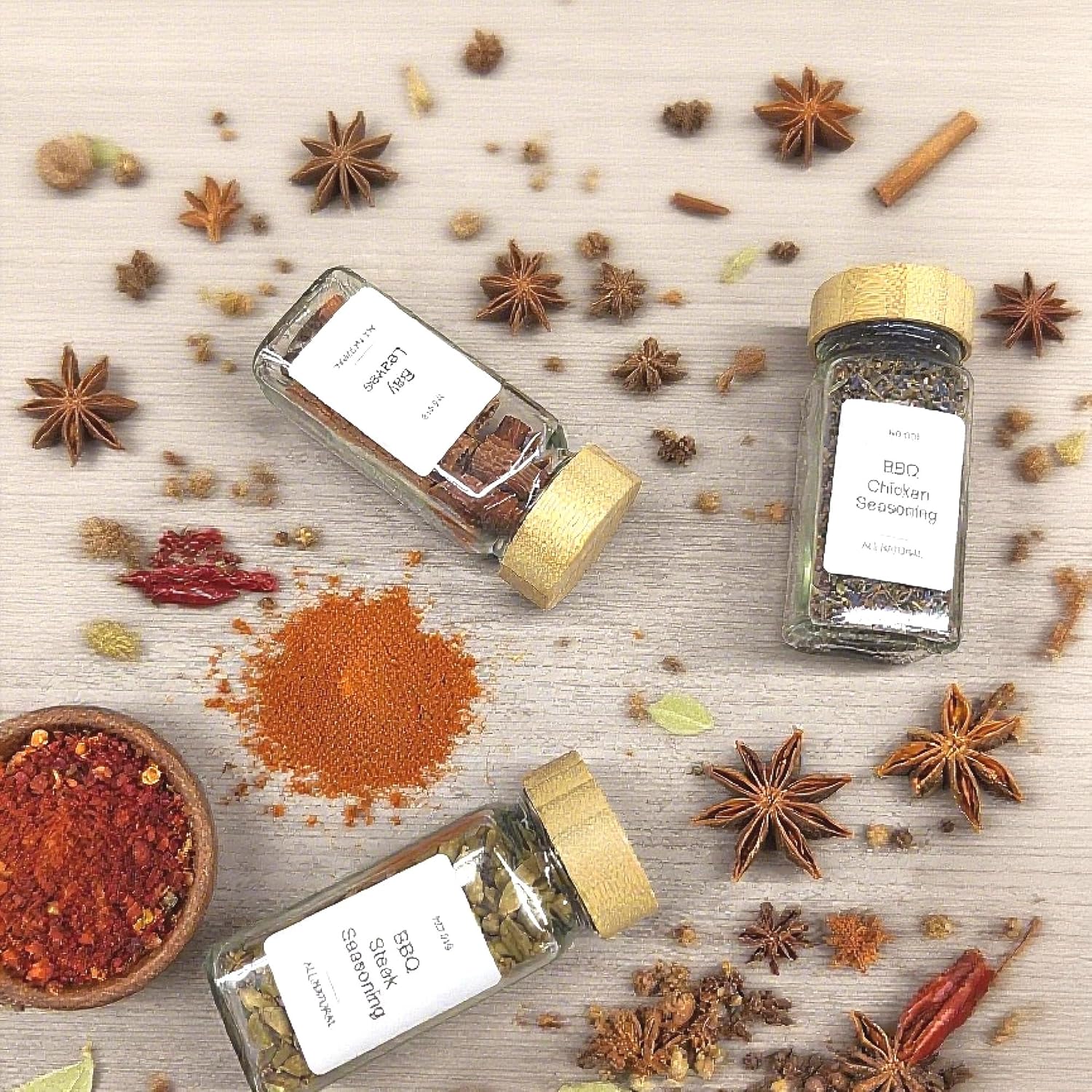 • Complete Set: 4-tiers drawer spice rack, 24 square bamboo-lidded empty glass spice jars with 2-in-1 lid, 216 Spice labels, 25 non-slip rubber.