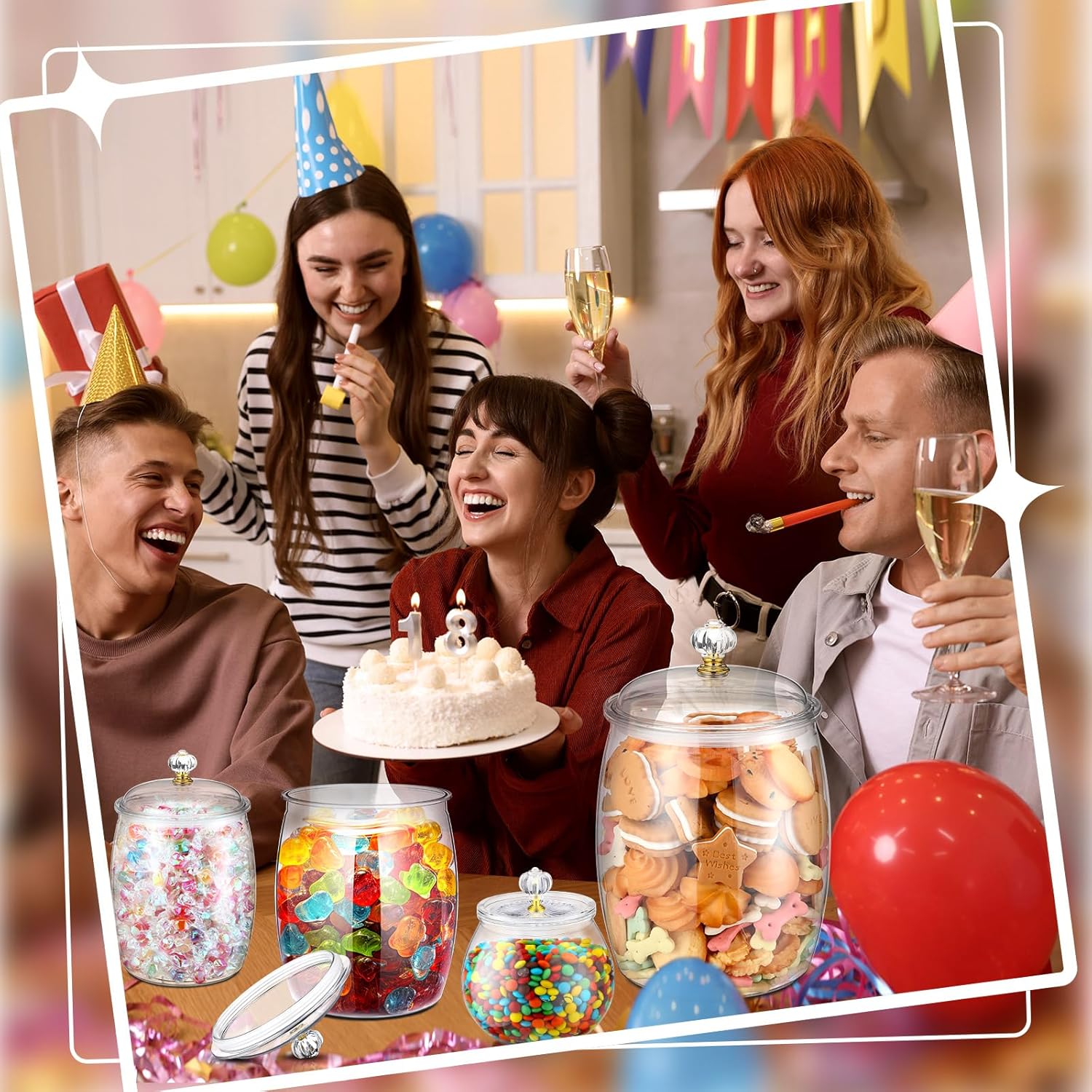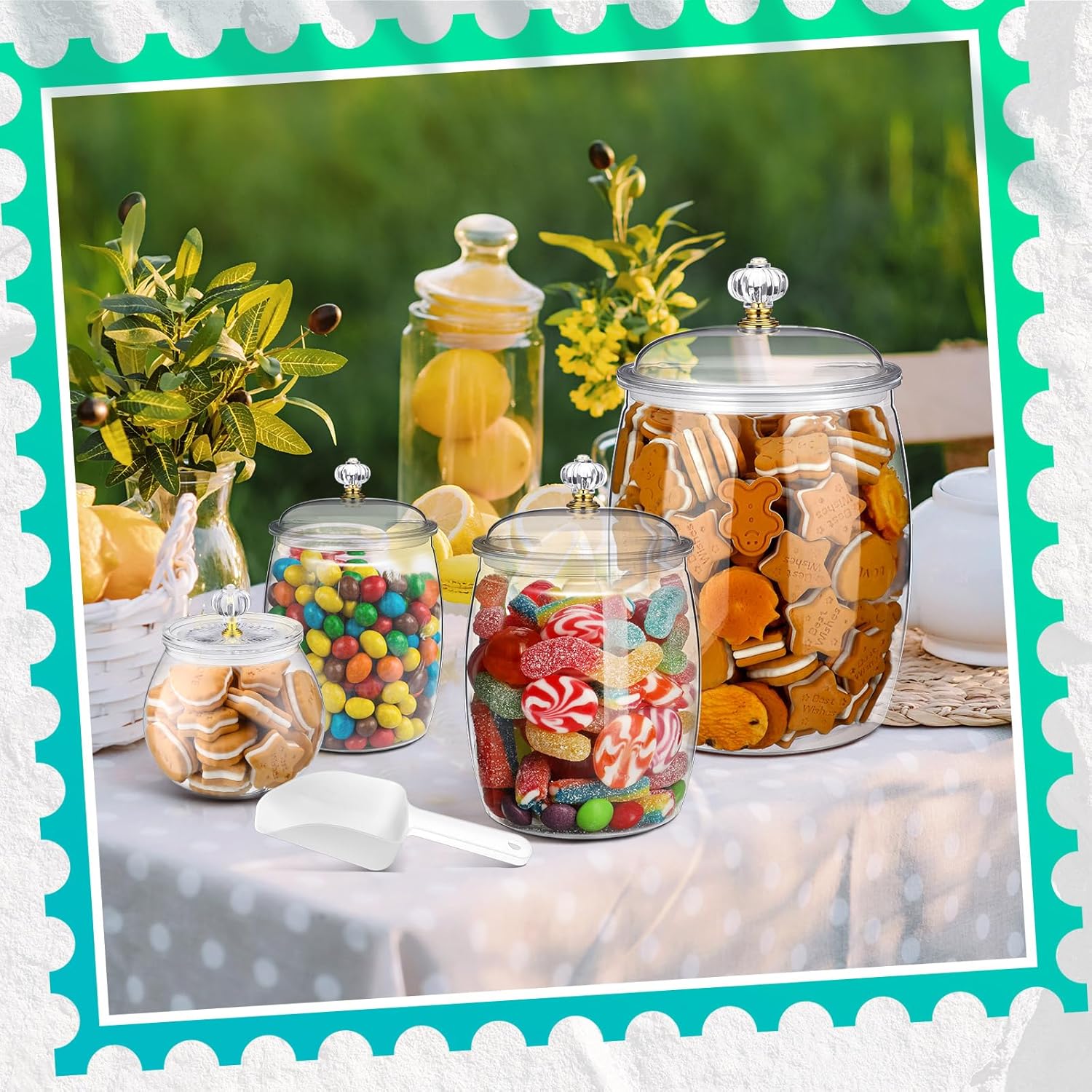 Nuogo 4 Pcs Plastic Candy and Cookie Jars with Lids Clear Cookie Container Candy Jars Large Airtight Apothecary Storage Organization for Wedding Home Kitchen Bar(30/42/64/128 oz)