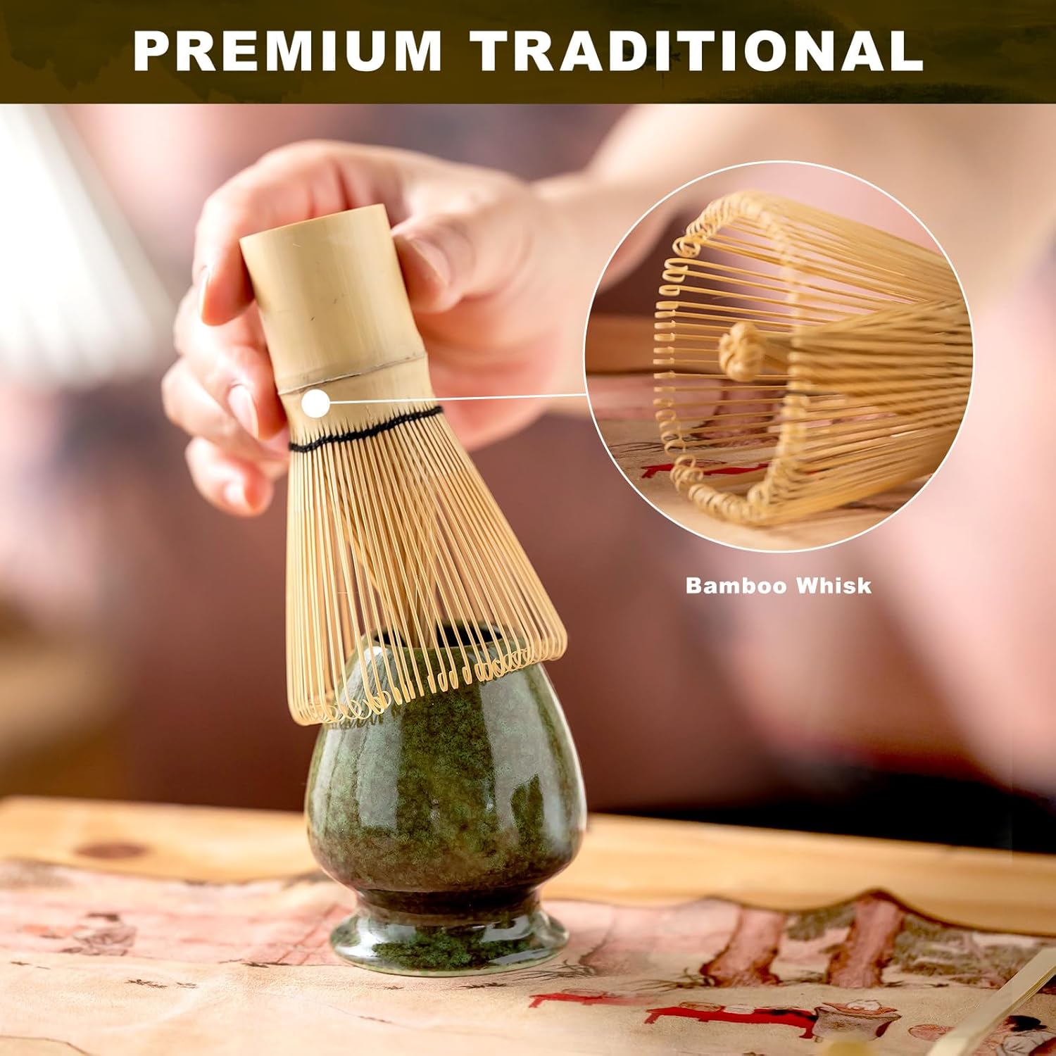 Matcha Whisk Set,(8Pcs) Includes Ceramic Matcha Bowl, Whisk, Holder, Scoop and Spoon, Rest, Sifter, Tea Towel,Traditional Tea Ceremony Set Gift