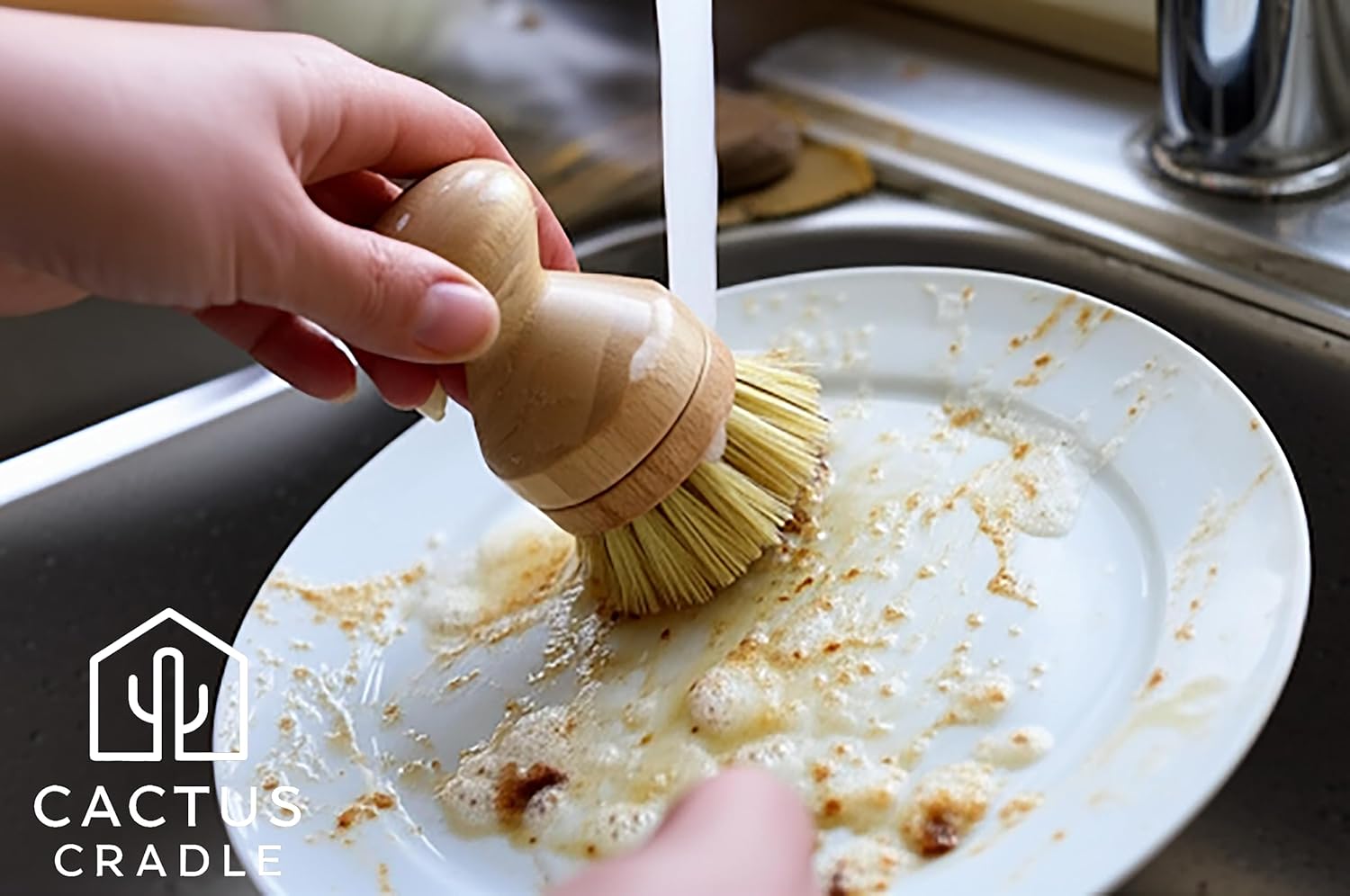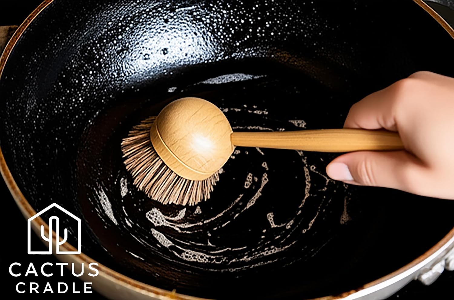 Cactus Cradle Bamboo Scrub Brush Kit – 4-Piece Dish Brush Set with 2 Handles & 2 Interchangeable Heads | Plastic-Free, Non-Toxic, Non-Scratch Cleaning for Dishes, Pots, Pans & Produce