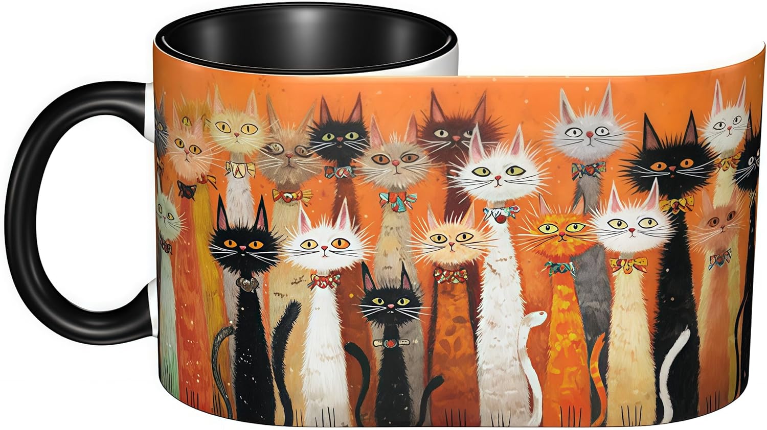 FyLybois Cat Coffee Mug Ceramic Coffee Cup with Handle Microwave Safe for Home or Office Gifts for Women and Men