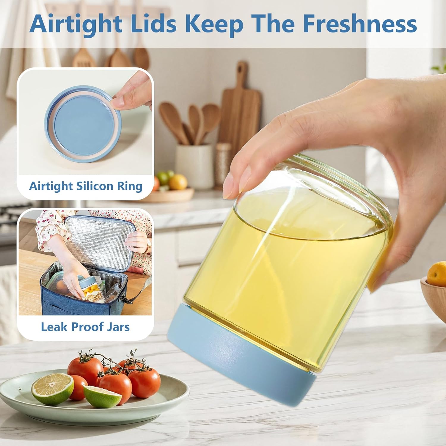 • Overnight Oats Jars With Lids: KEYWING Meal Prep Glass Jars are made with high quality BPA -Free glass, this premium durable food-grade material provides a clear view for the contents also allows you put them in microwave/ dishwasher/ refrigerator. Set of 8 Pack provides you a high value choice for making everyday yogurt or daily food storage.