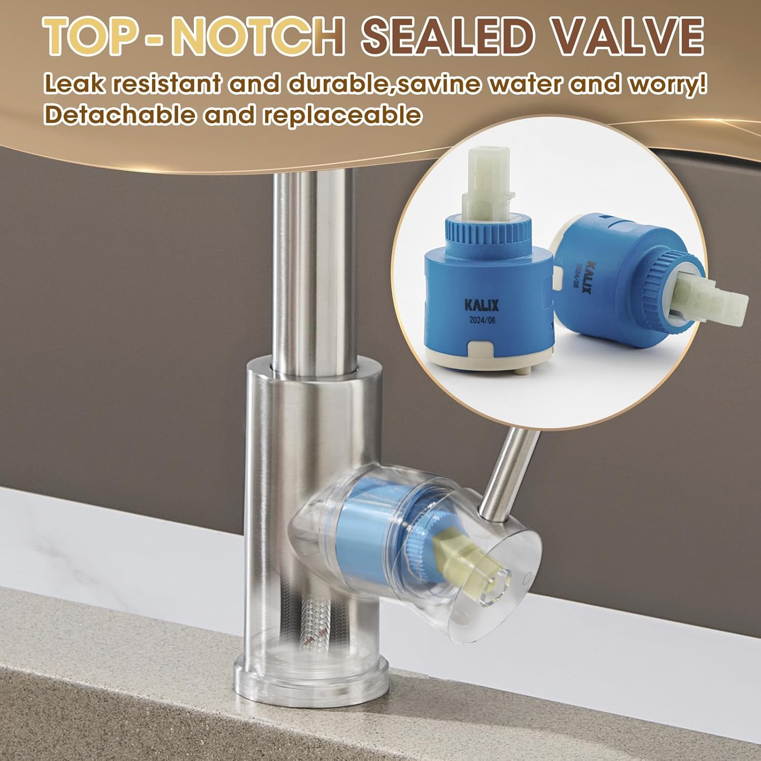 • HEALTHY FIRST - Our SUS304 stainless steel kitchen sink faucet with sprayer adheres to lead-free standards and incorporates food-grade PEX inner hoses. The Ceramic Disc Valves have been subjected to stringent testing, comprising 500,000 cycles of operation. CEC certified for energy efficiency.