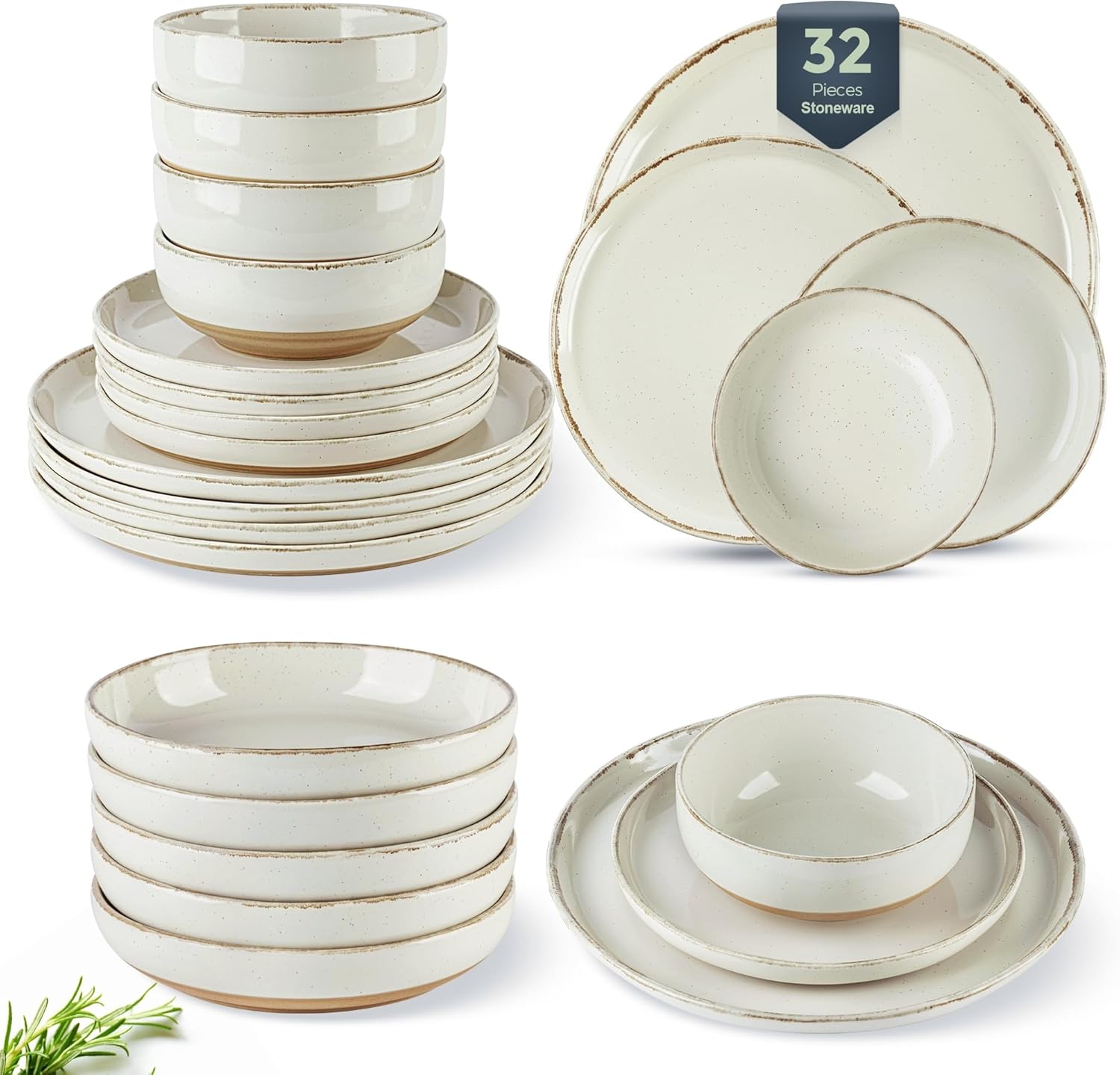 • WHAT’S IN THE BOX: These series 32-piece dinnerware set includes 8 Pcs 10.5” Dinner Plates, 8 Pcs 8” Dessert Plates, 8 Pcs 8” pasta bowls, 8 Pcs 5.75” cereal bowls, making it a great set service for 8