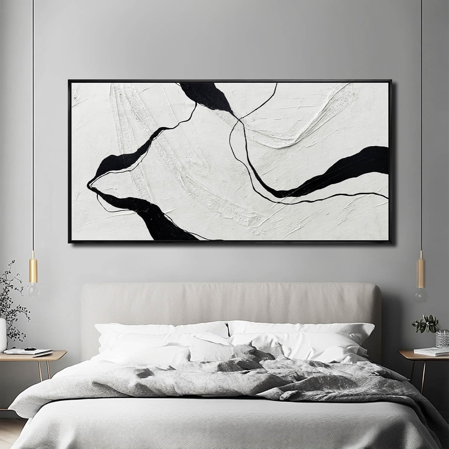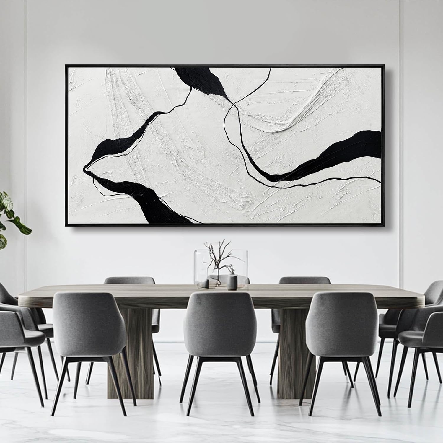 Large Framed Abstract Wall Art 29"x58" Black and White Contemporary Line Canvas Neutral Wall Decor for Modern Living Room Office Bedroom