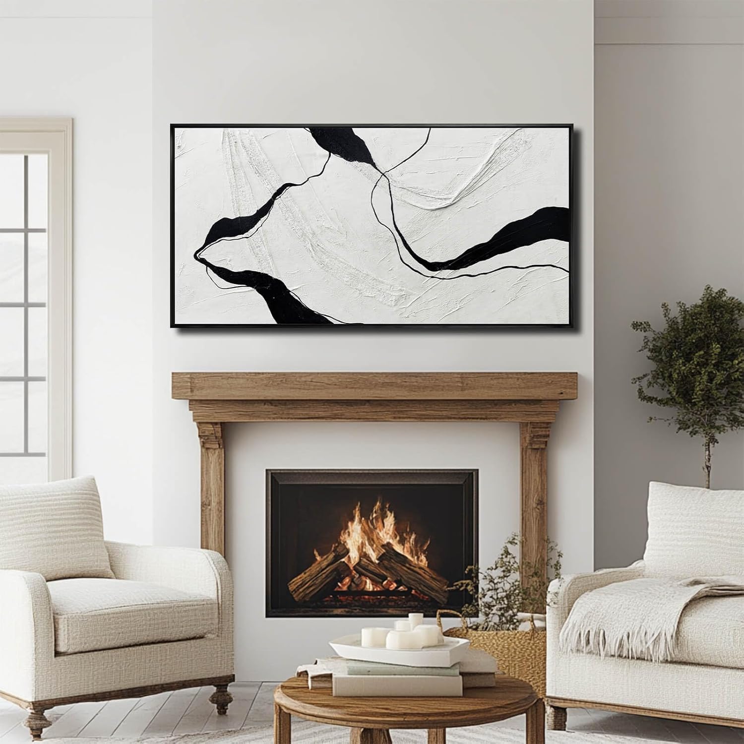 Framed Minimalist Wall Art 24"x48" Black and White Abstract Print Poster Line Canvas Modern Artwork for Living Room Bedroom Office Decor