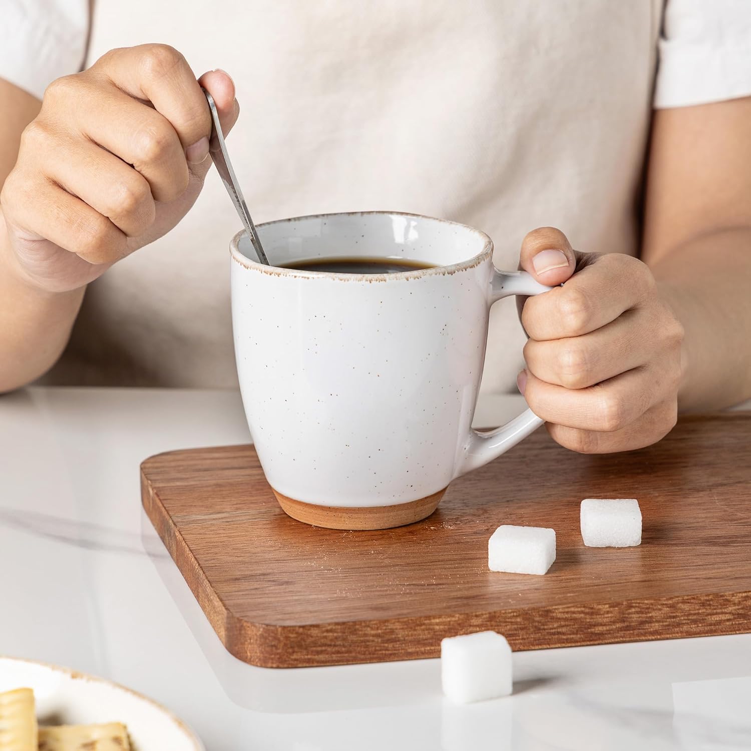 AmorArc 12oz Ceramic Coffee Mugs set of 6, Stylish Coffee Mugs with Rustic Terracotta Underside for Latte/Cappuccino/Milk/Cocoa, Dishwasher&Microwave Safe, White