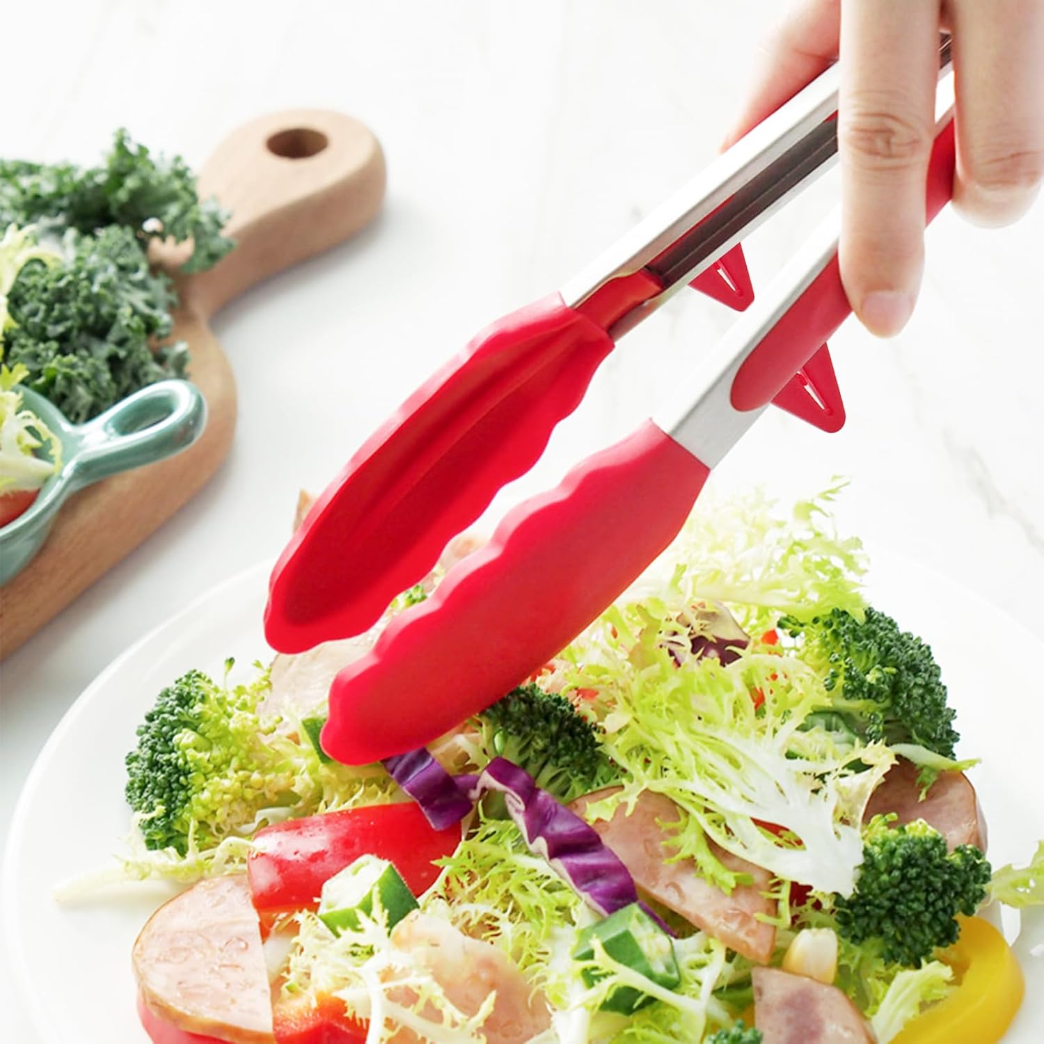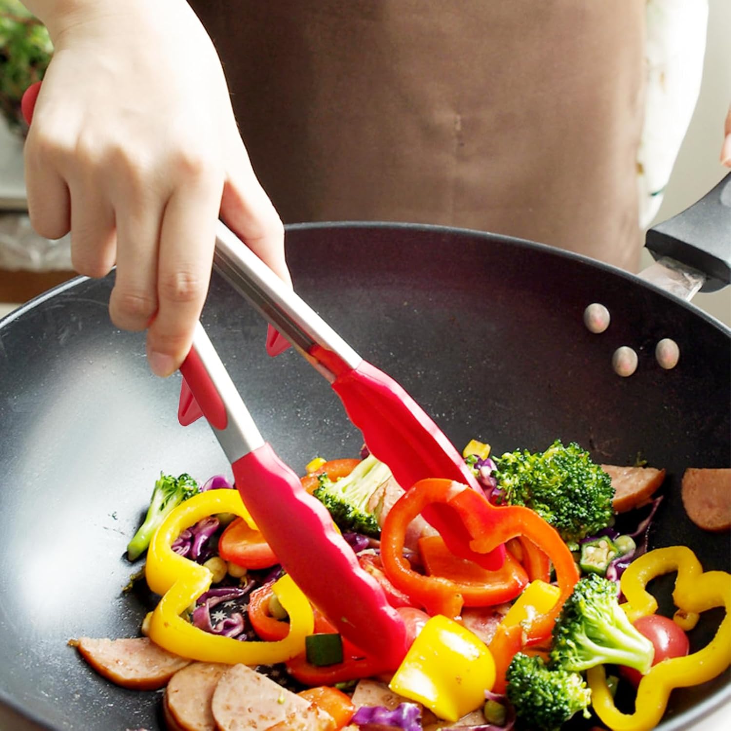 NileHome Tongs for Cooking, Professional Stainless Steel Cooking Tongs – Heat-Resistant for Grilling, BBQ, Serving Salad, Pasta, and Kitchen Use, Dishwasher Safe, Set of 9" 12", Red