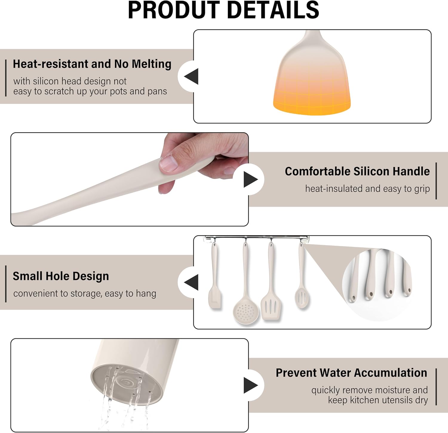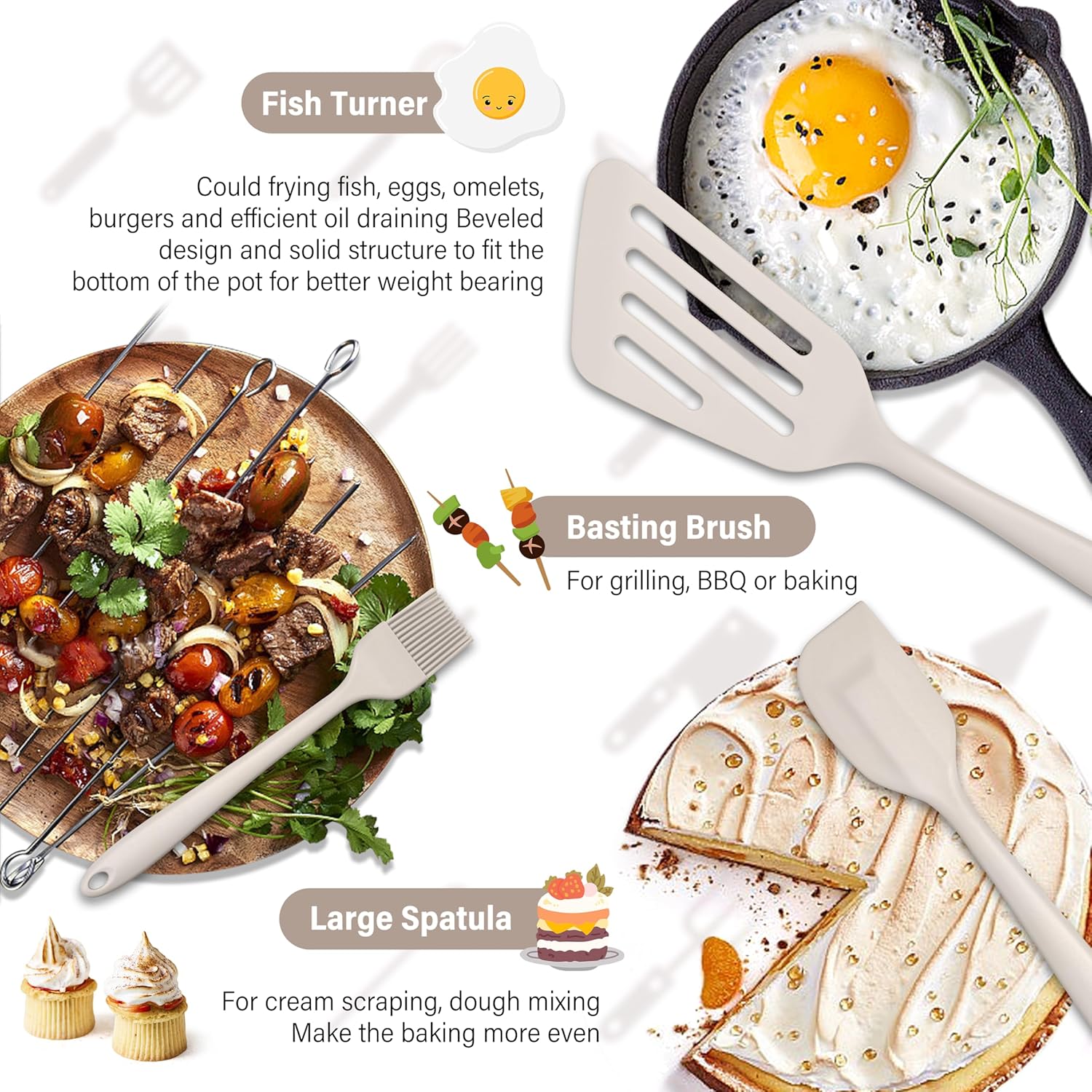 • ONE-PIECES AND ERGONOMIC DESIGN: Silicone handle is heat-resistant and anti-slip to protect your hands, One-piece design makes the connection between the handle and the silicone head more stable, Ergonomic design to reduce hand fatigue, perfectly matches the natural position of the hand, provide comfortable to hold and provide a secure grip, achieving flexible stir-frying