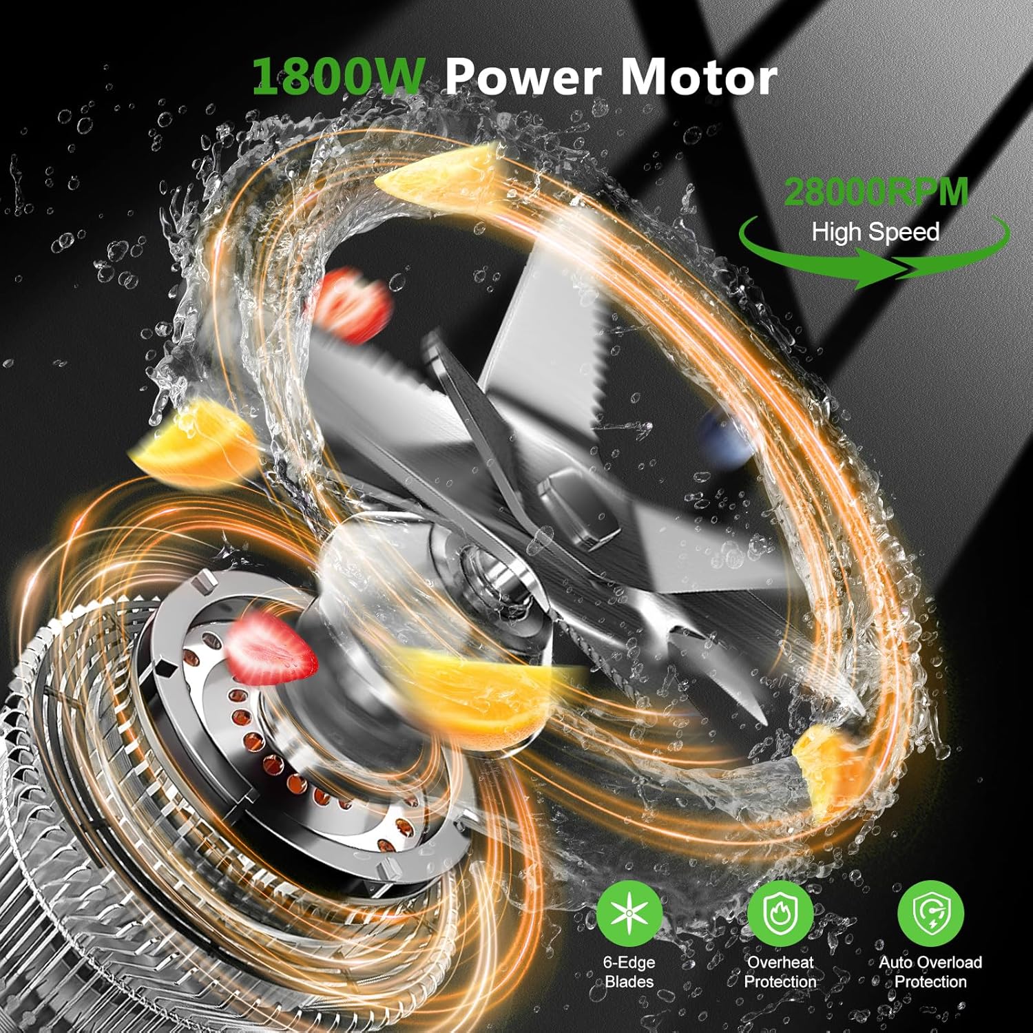 • Ultra-Powerful Performance: With a robust 1800W motor reaching speeds up to 28,000 RPM and 3D 6-leaf stainless steel blades, this high-performance kitchen blender for smoothies pulverize ice, frozen fruits, nuts, and tough ingredients effortlessly—delivering ultra-smooth textures for creamy smoothies, silky nut butters, and refreshing frozen drinks. The corrosion-resistant blades stay sharp for long-lasting durability