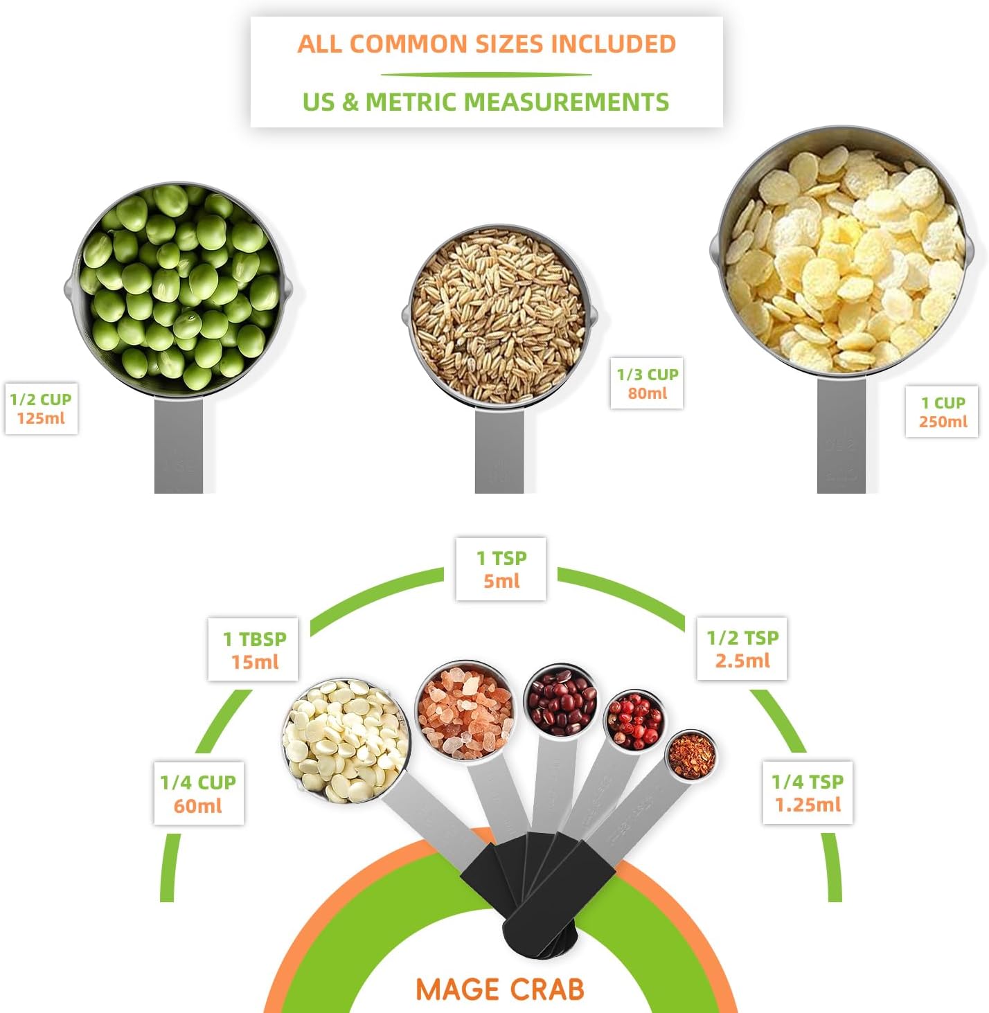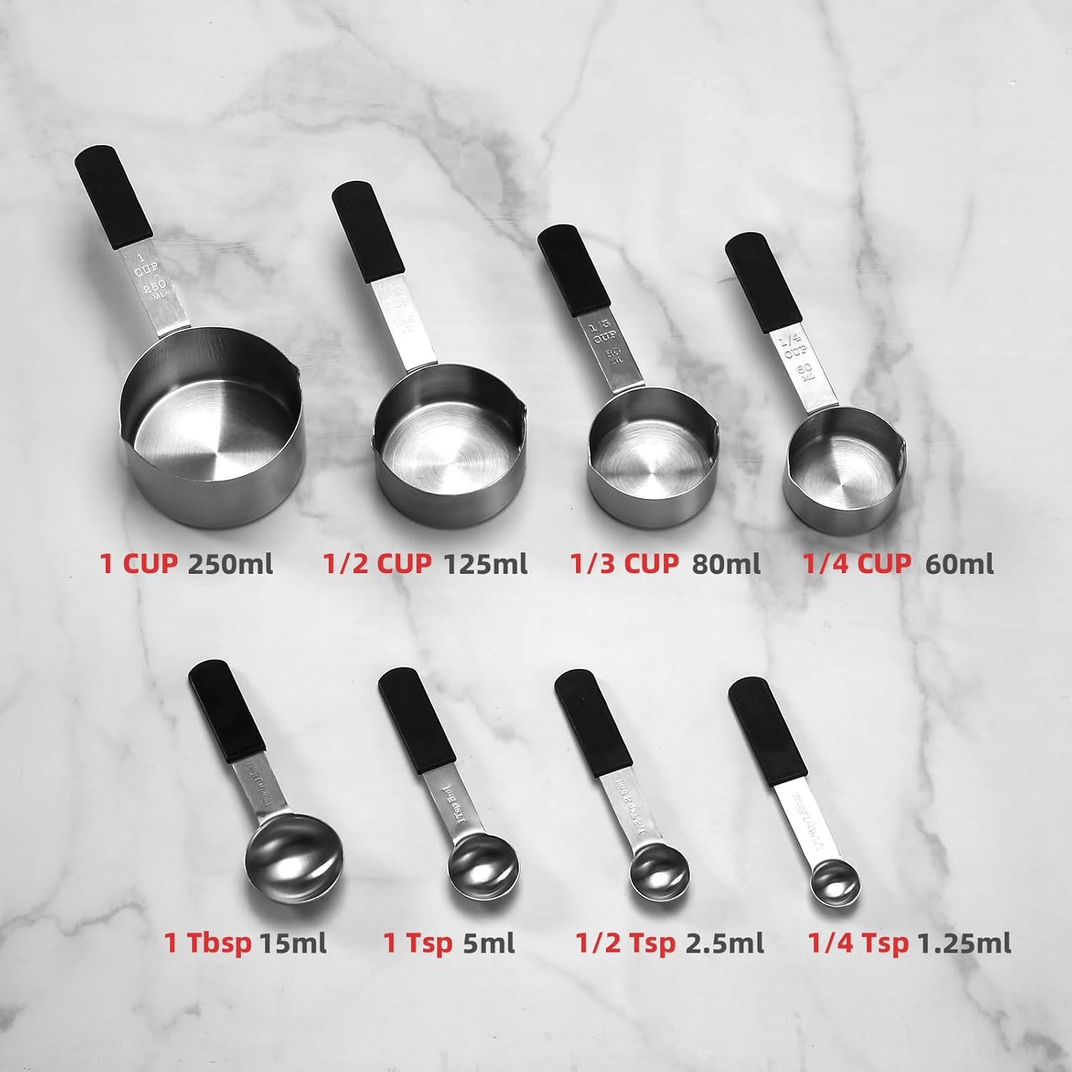 • πŸ”’ All-in-One Precision Set – Includes 1 Cup, 1/2 Cup, 1/3 Cup, 1/4 Cup, 1 Tbsp, 1 Tsp, 1/2 Tsp, and 1/4 Tsp – ideal for baking, cooking, sauces, or coffee β˜•. Accurate measuring for every recipe from home meals to gourmet desserts 🍰.