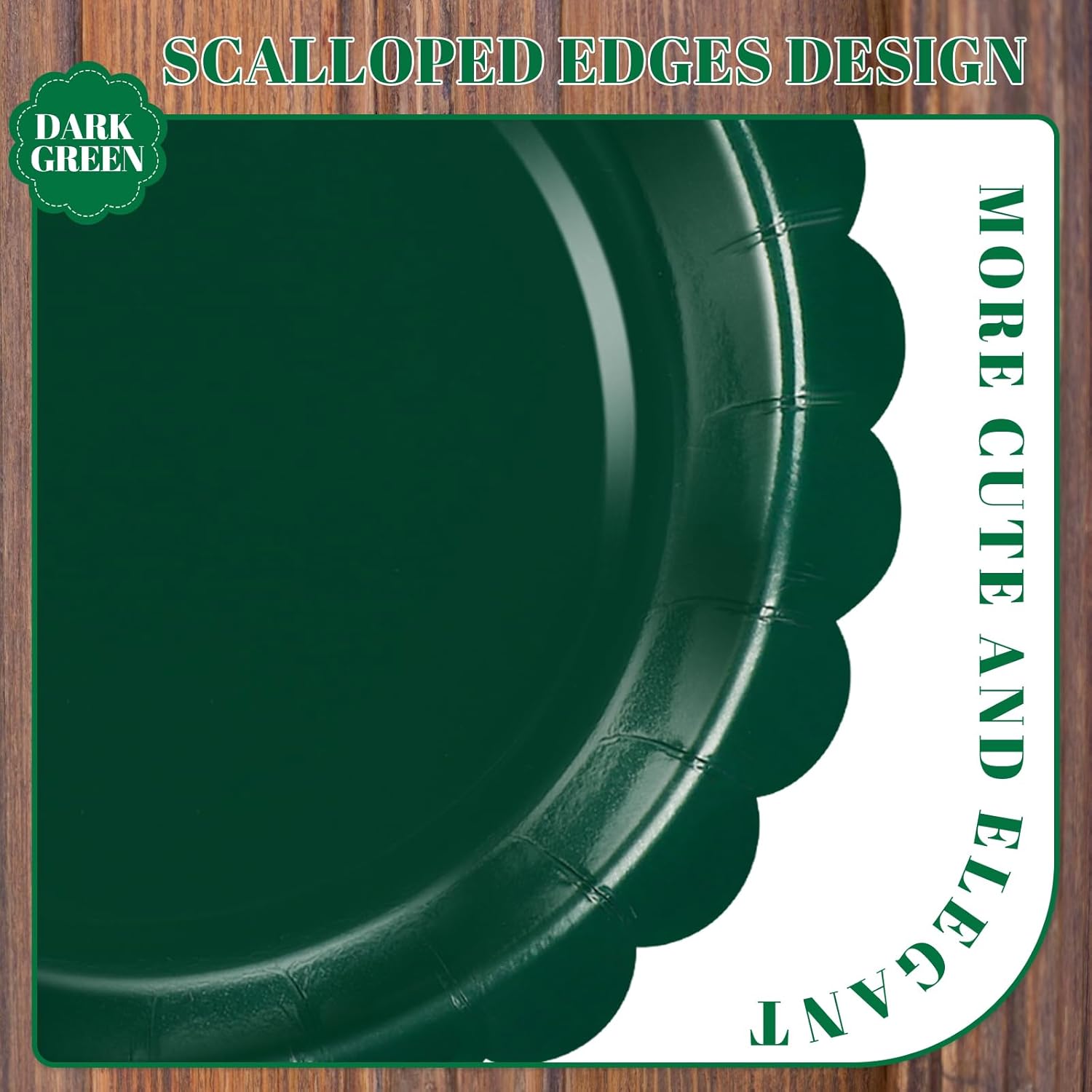 30 Pcs Dark Green Plates 9 Inch Scalloped Christmas Plates Disposable Green Dessert Dinner Plate Holiday Party Plate for Thanksgiving, Christmas, Birthday