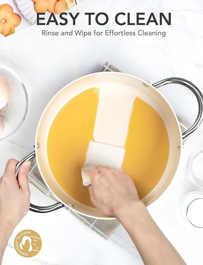 • Superior Nonstick Performance: The advanced nonstick coating prevents food from sticking, making cleaning a breeze and reducing oil use by 90%. Its durability ensures long-lasting nonstick performance, maintaining its quality over time. Hand washing recommended.