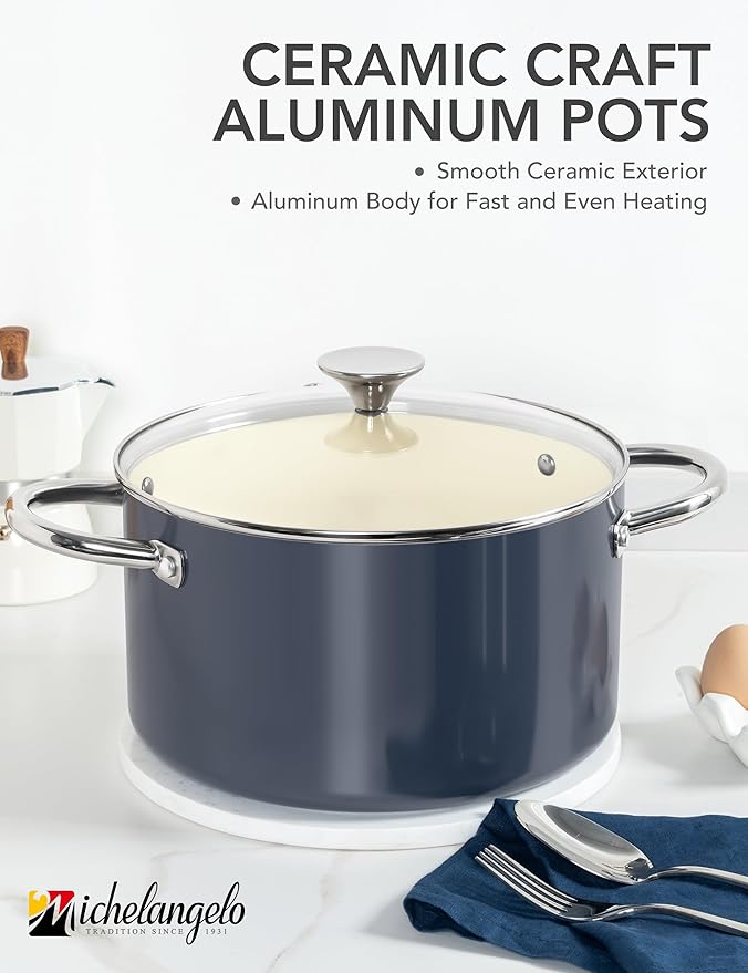 • Even Heat Distribution: The aluminum body provides superior heat conductivity, while the tri-ply bottom distributes heat quickly and evenly for enhanced flavor and texture. This ceramic pot is oven-safe up to 450°F for versatile stovetop-to-oven cooking.