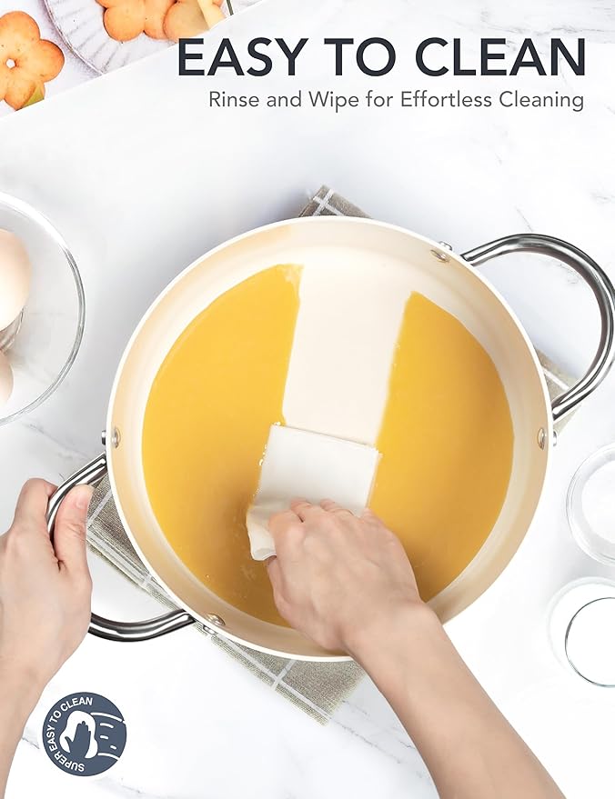 • Superior Nonstick Performance: The advanced nonstick coating prevents food from sticking, making cleaning a breeze and reducing oil use by 90%. Its durability ensures long-lasting nonstick performance, maintaining its quality over time. Hand washing recommended.