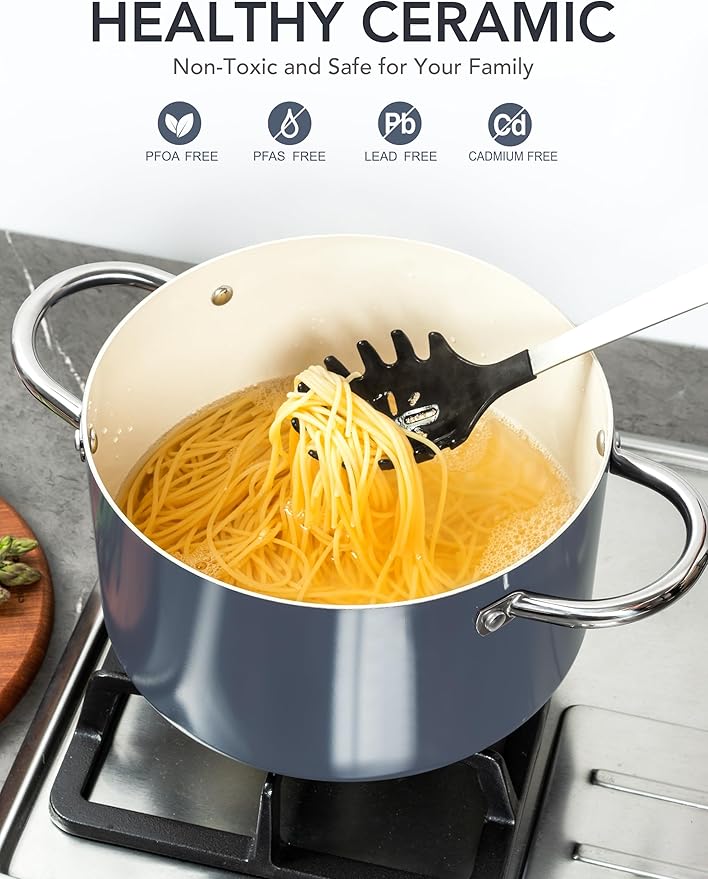 • Healthy & Non-Toxic Cooking: Our ceramic-coated stockpot is free of PFOA and PFOS, ensuring no harmful substances are released during cooking, allowing you to prepare meals with peace of mind for your family.