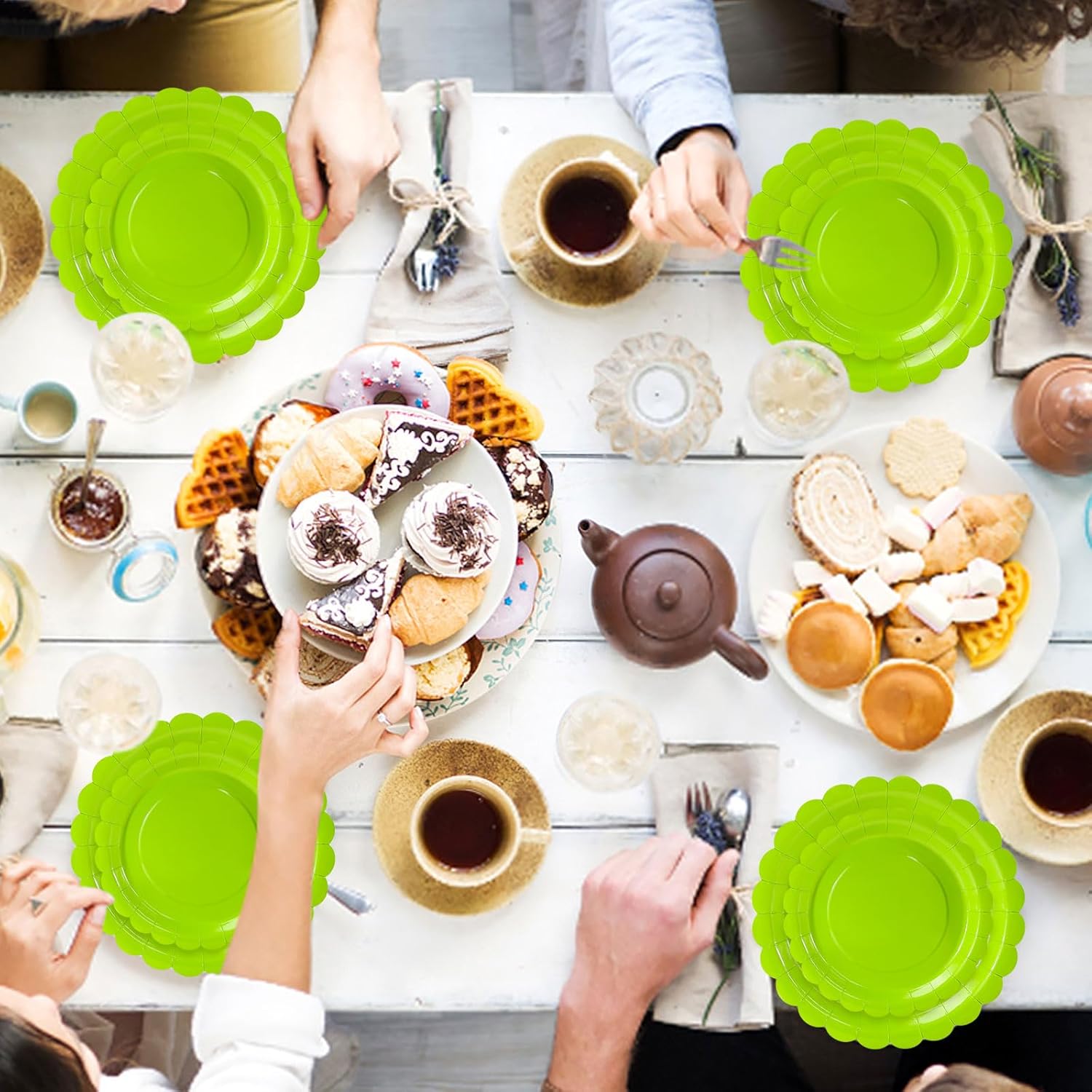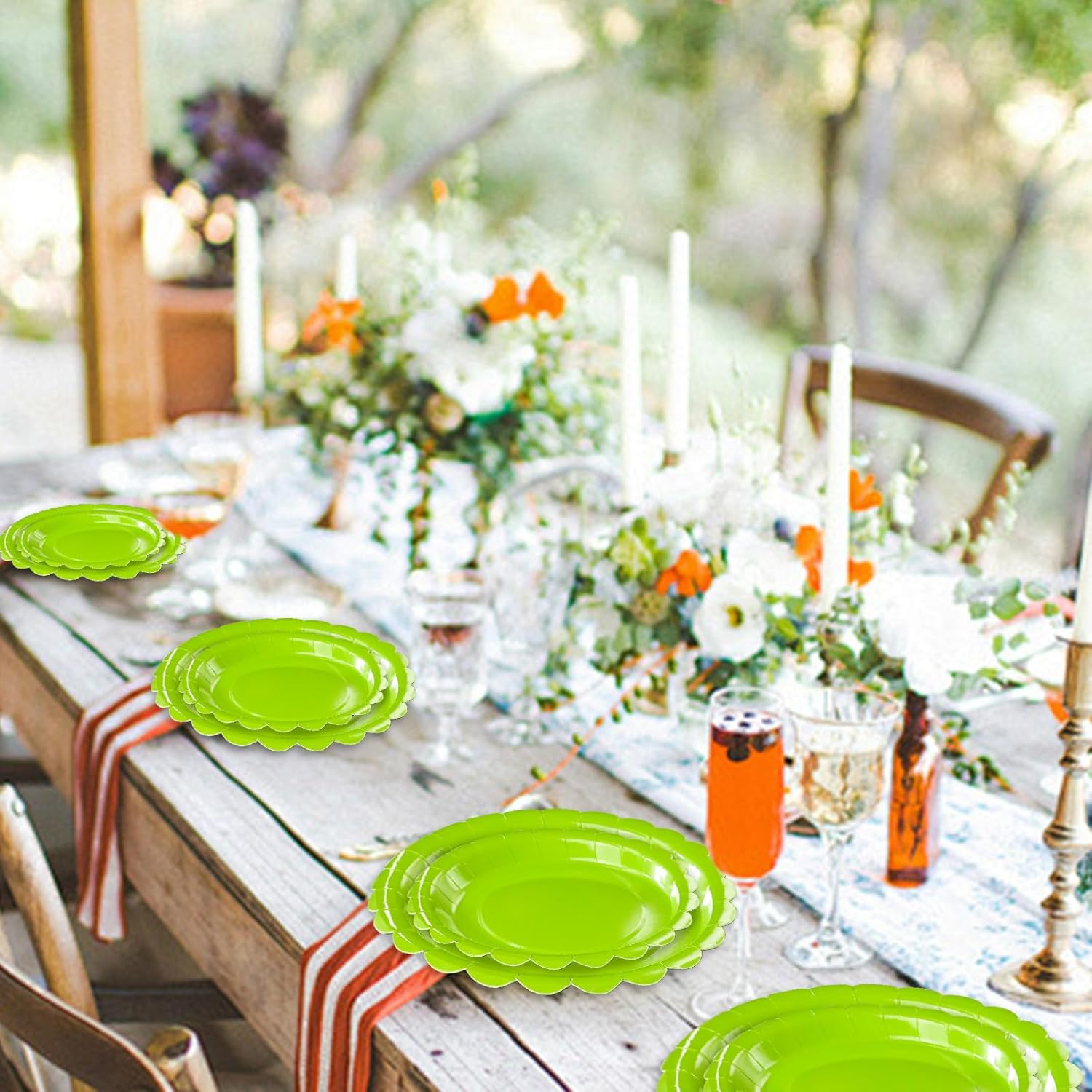 • Scalloped plates disposable: The lime green scalloped paper plates with disposable design can reduce cleaning time, allowing you to enjoy more family time. The disposable lime green dessert plates can provide convenience for both you and guests for parties