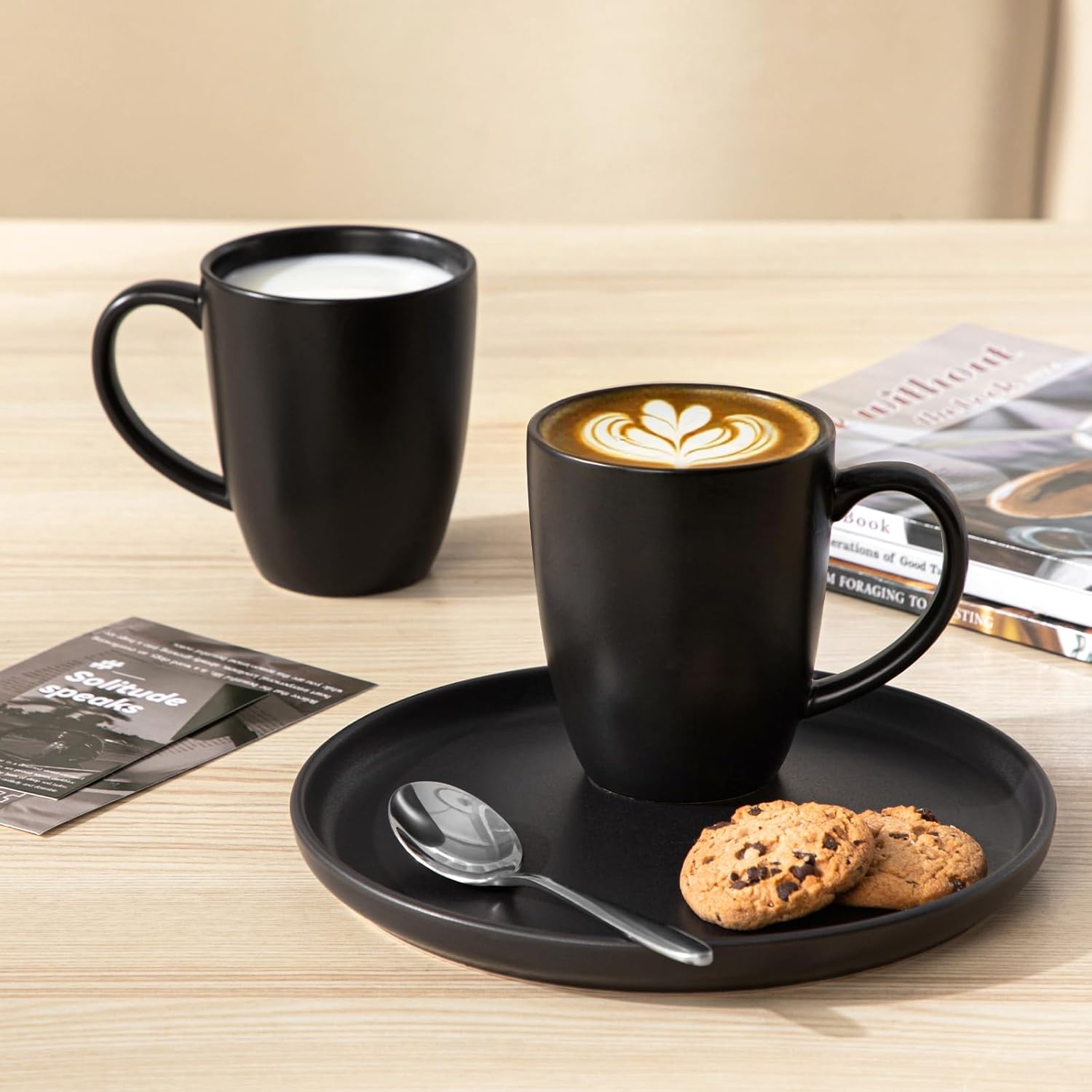 • 【Elegant Black Mug Set for Daily Use】Includes 6 classic black ceramic mugs in 12oz sizes—ideal for coffee, tea, hot chocolate, or cappuccinos. The clean design fits seamlessly into any kitchen, office, or café setting.