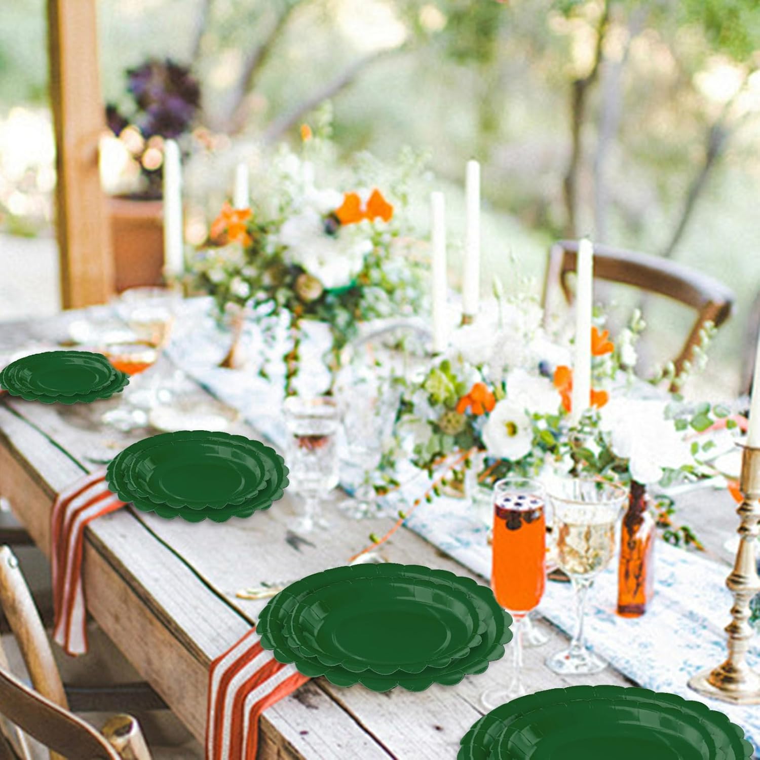 50 Pcs Green Scalloped Paper Plates 25 × 7'' and 25 × 9'' Disposable Green Scalloped Dinner Plates for Wedding Baby Shower Birthday Party Disposable Dessert Plate