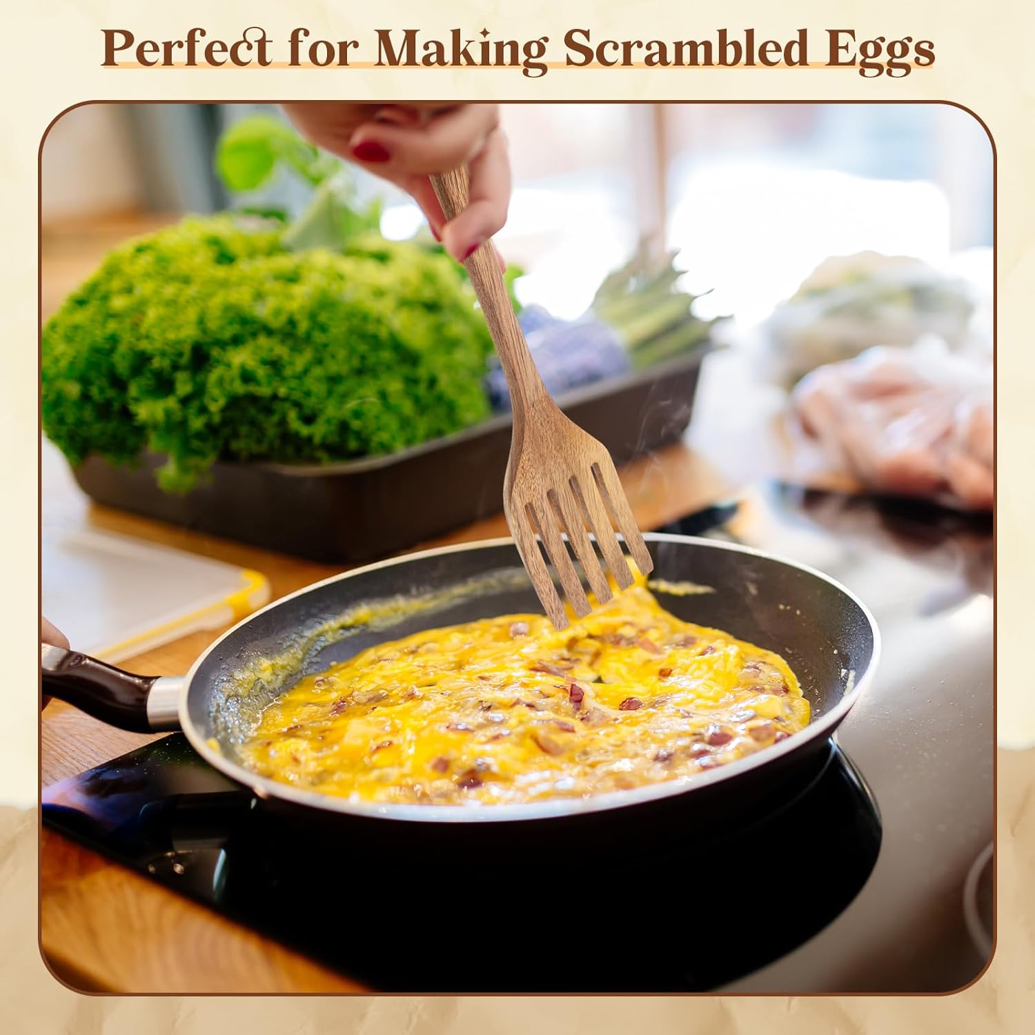 • Package Includes: you will receive a 10 inches acacia wooden cooking fork, designed with 5 teeth, which can quickly and easily mix batter ingredients or omelettes, meeting the diverse cooking needs of the kitchen from stirring to frying, and is an ideal tool for completing various cooking tasks