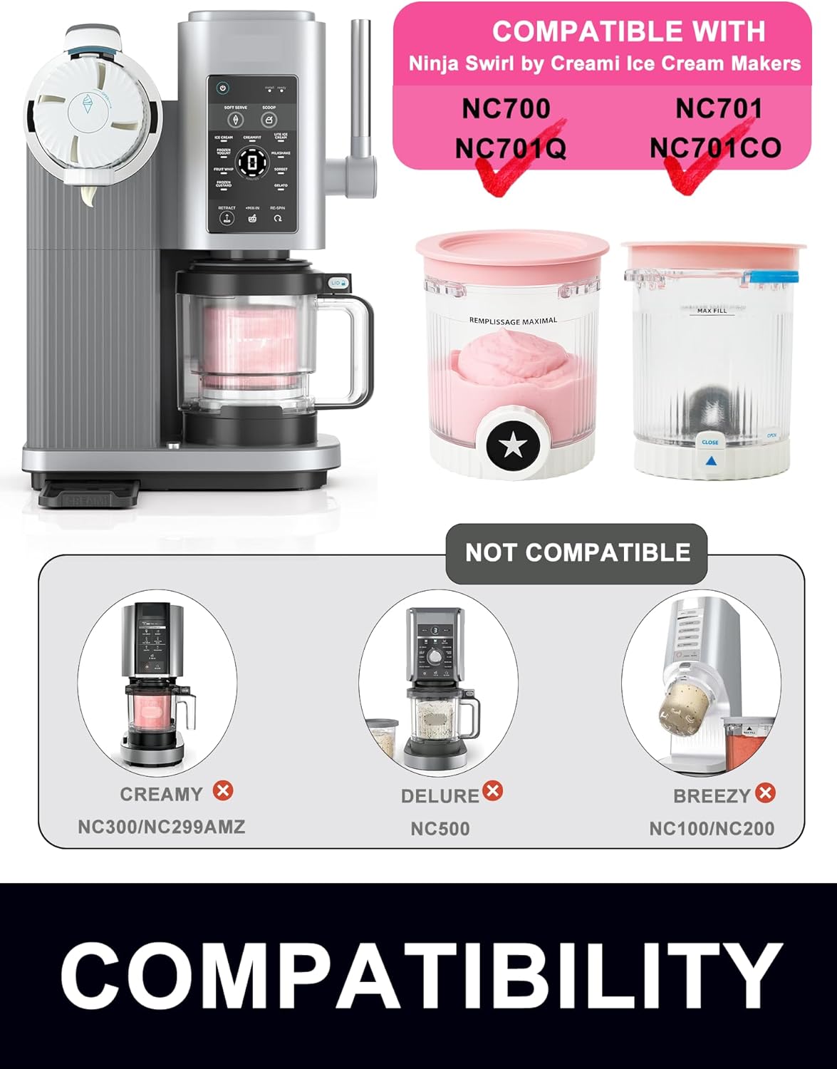 • Seamless Fit for Ninja Creami Swirl: Precisely designed for Ninja Swirl by CREAMi NC700/NC701 Series Ice Cream & Soft Serve Makers. NOT compatible with NC300, NC500, NC100, or NC200. Confirm model for perfect use
