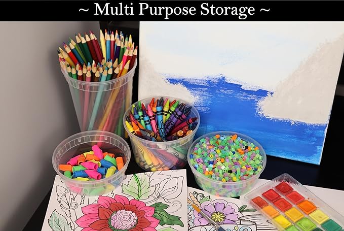 Zekii 24 sets Mix Size Deli Containers with Lids, 8x 8oz, 8x 16oz, 8x 32oz, Soup Containers w/Lids Airtight, Disposable, BPA Free, Takeout soup Cups, Meal Prep, Food Storage w/Measurements