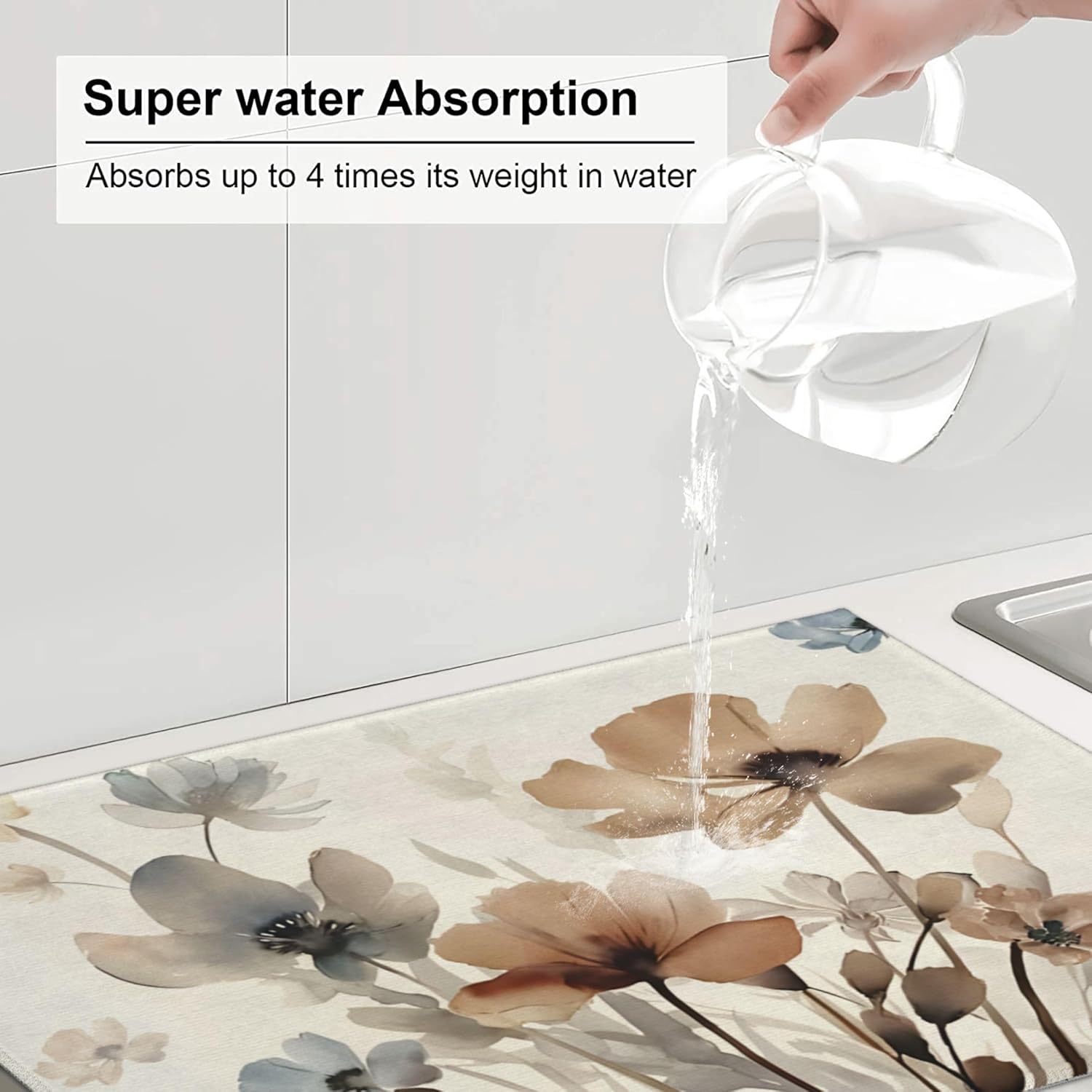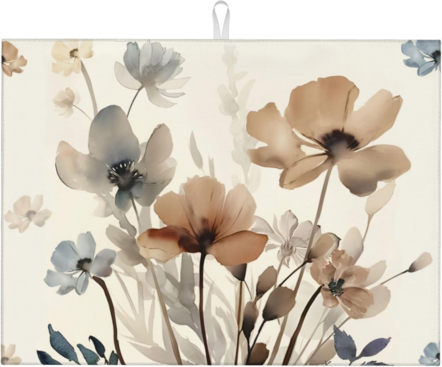 Floral Dish Drying Mat for Kitchen Counter, 18 x 24 Inch Microfiber Spring Summer Dish Mats for Drying Dishes, Absorbent Flowers Dish Drying Pad Kitchen Decor Rack Mat