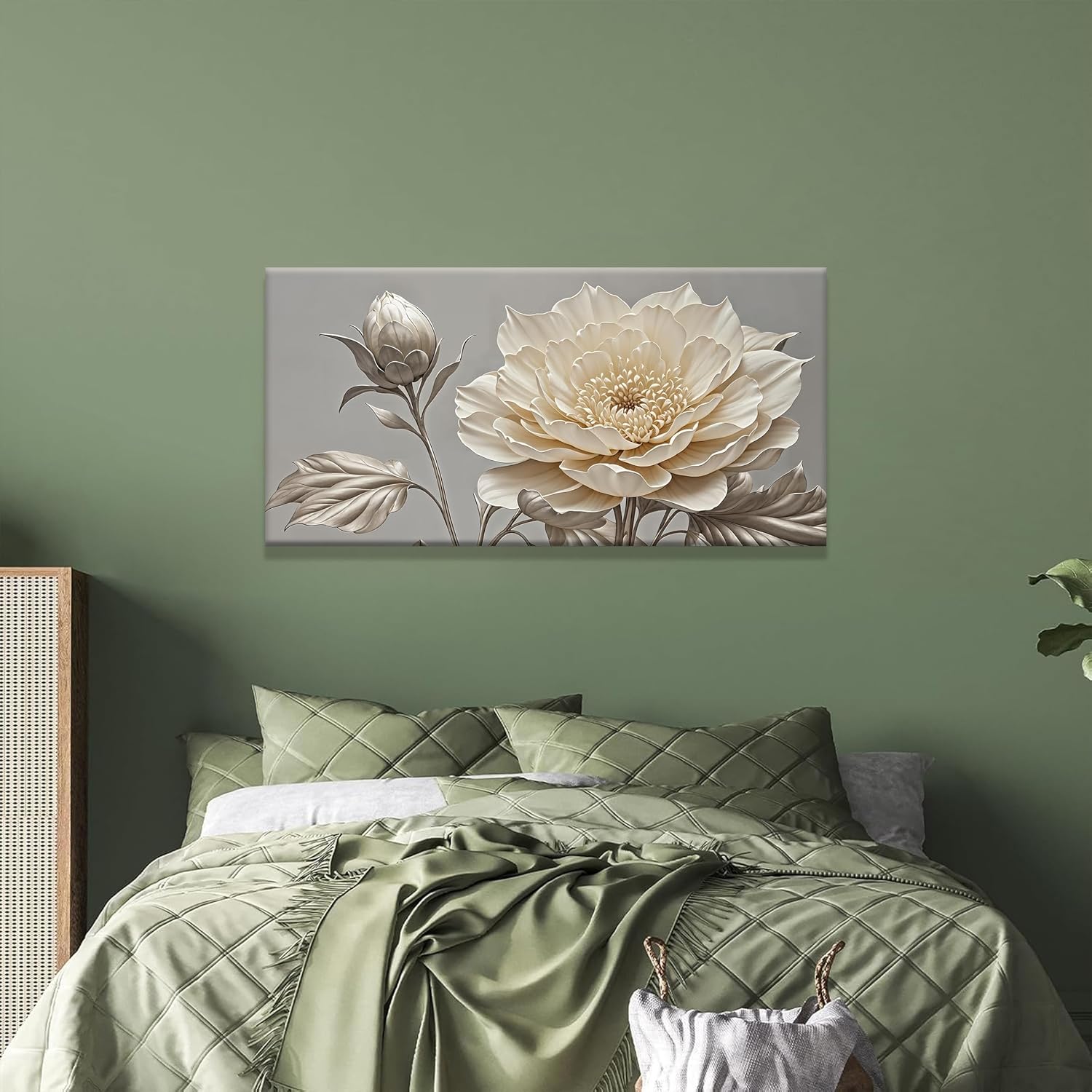 QSQ Canvas Art Wall Decor Print Paintings Silver White Flower Wall Art Prints Painting Pictures Ready To Hang Pictures For Bedroom Bathroom Office Kitchen Home Wall Decor Artwork 20" × 40"