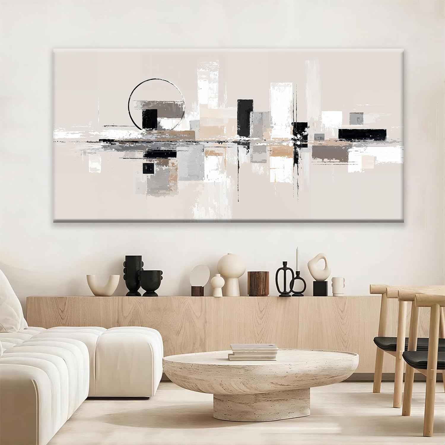 QSQ Large Abstract Wall Art For Living Room Painting Black White Wall Art Prints Minimalist Grey Brown Abstract Art Modern Canvas Art Wall Decor Picture For Bedroom Office Home Decoration 29" × 58"