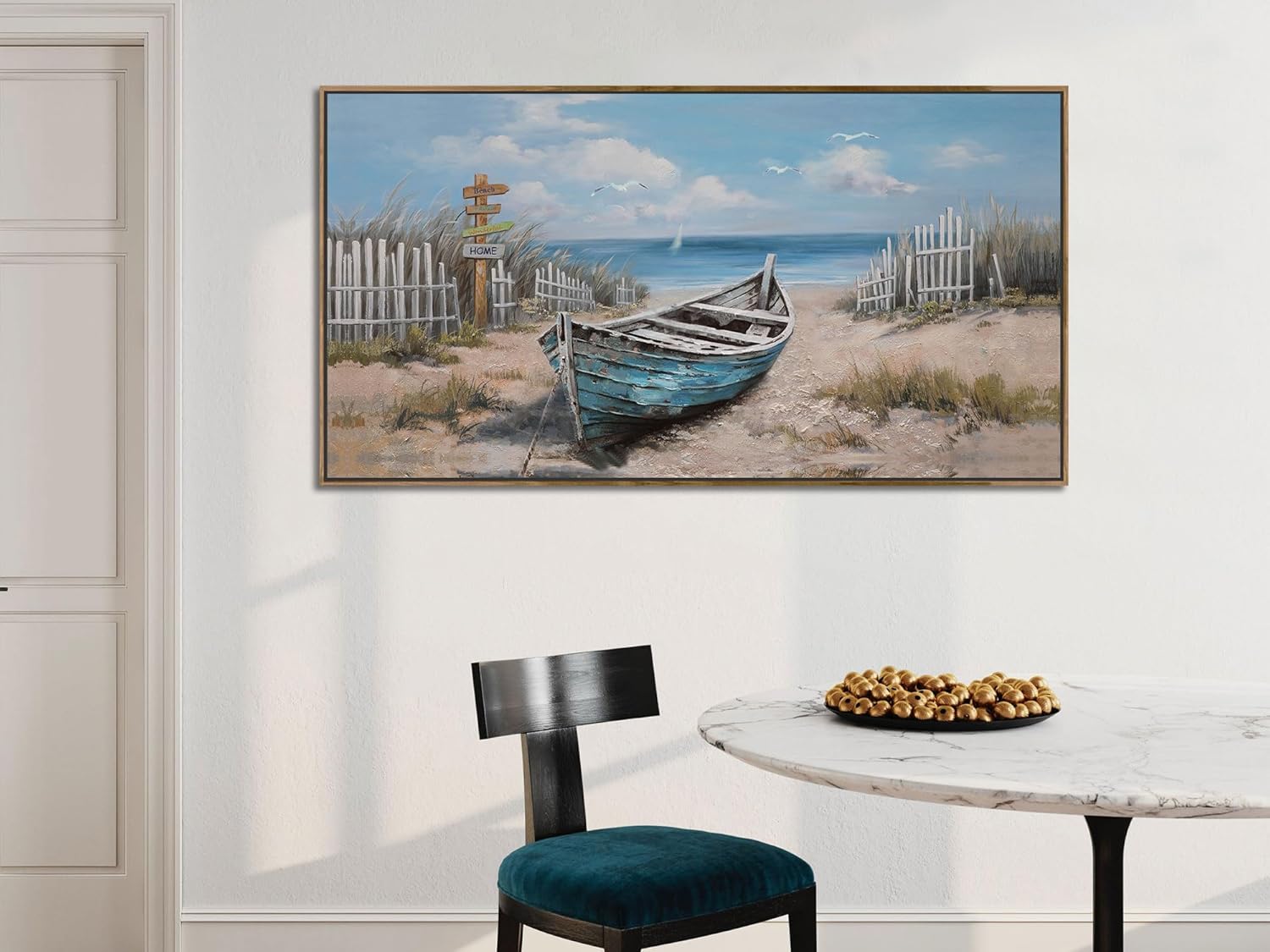 Ardemy Framed Canvas Wall Art Extra Large Boat Bedroom Pictures Wall Decor Living Room, Beach Seascape Paintings Wall Decor Textured Artwork for Kitchen Dining Room Home Office, 40"x20"