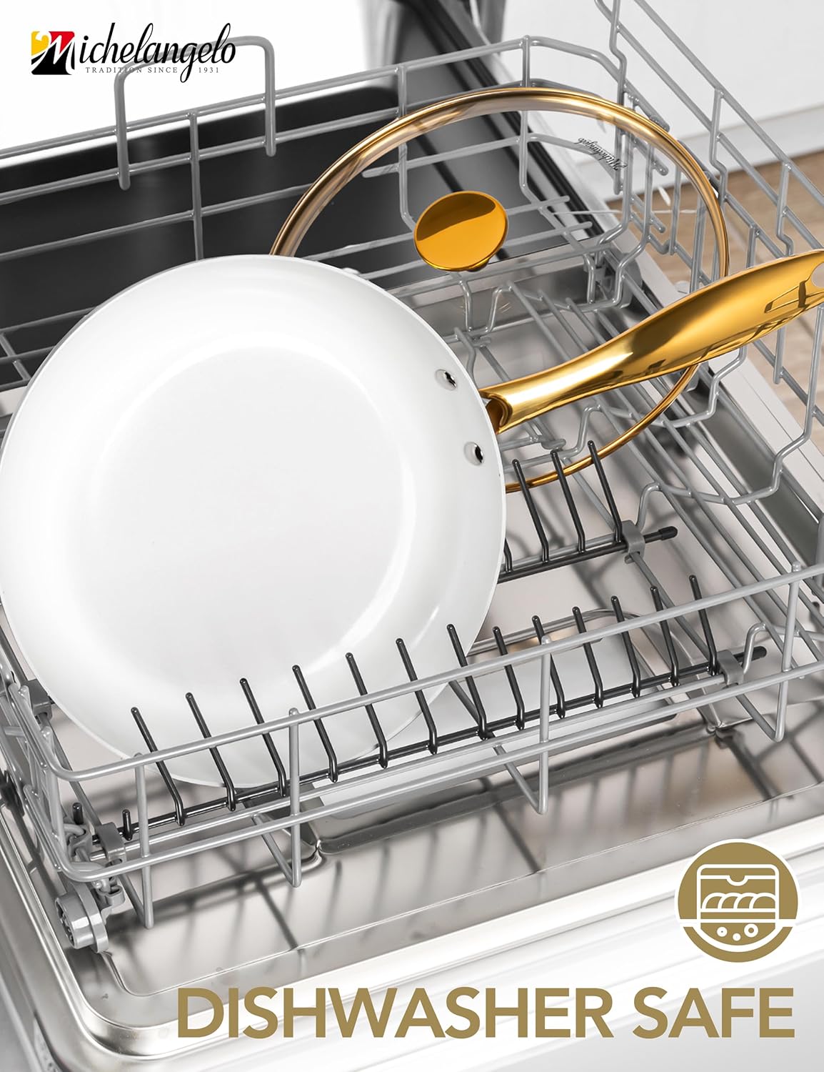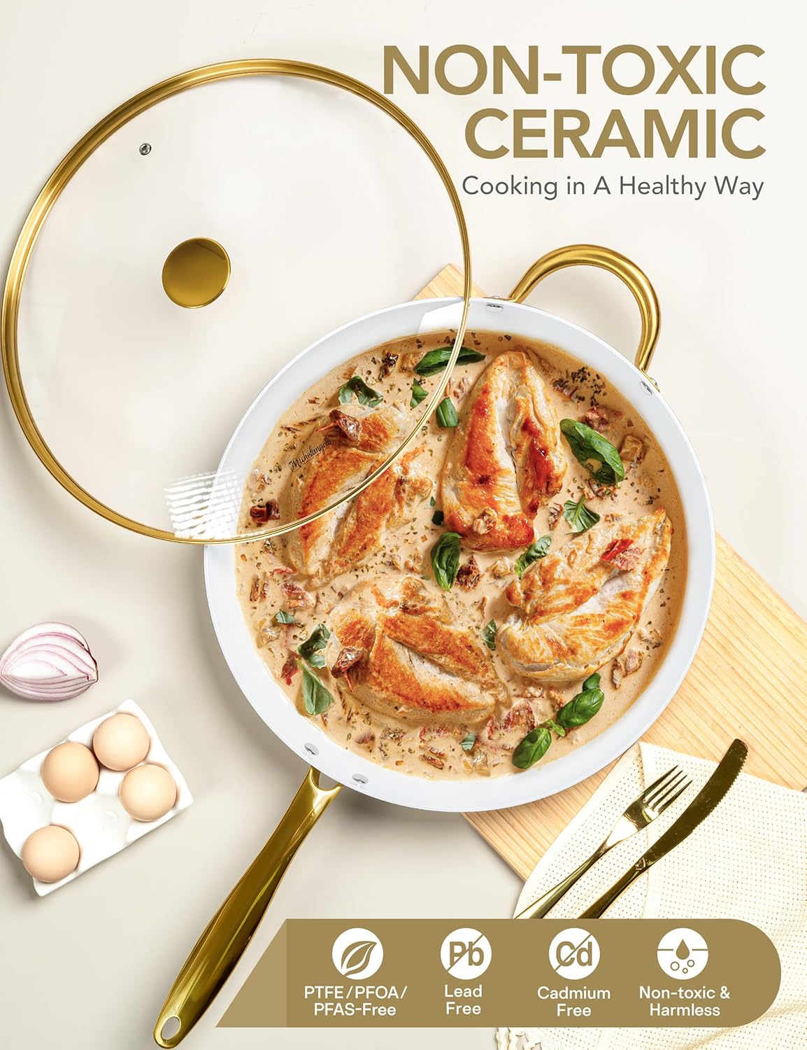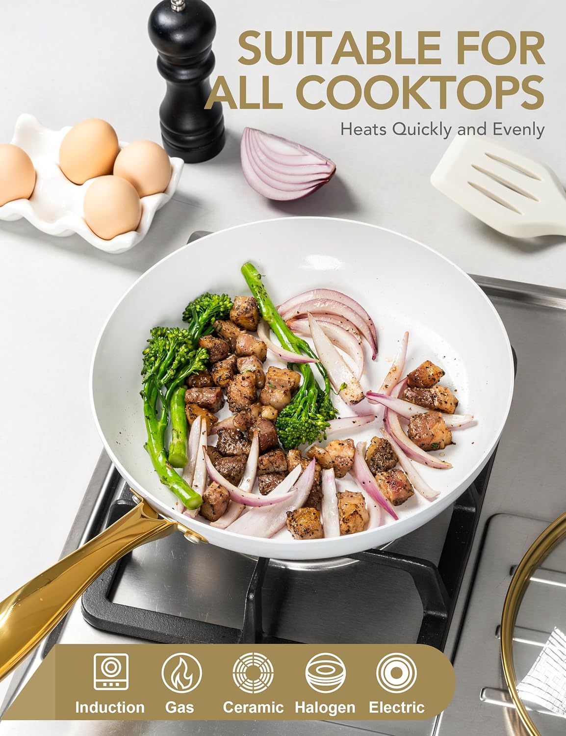 • Even Heat & Versatile Stovetop Use - Featuring an alloy base, this nonstick ceramic frying pan provides fast and even heat distribution for quicker cooking. Compatible with gas, electric, and induction stovetops, this versatile skillet with lid is ideal for any kitchen.