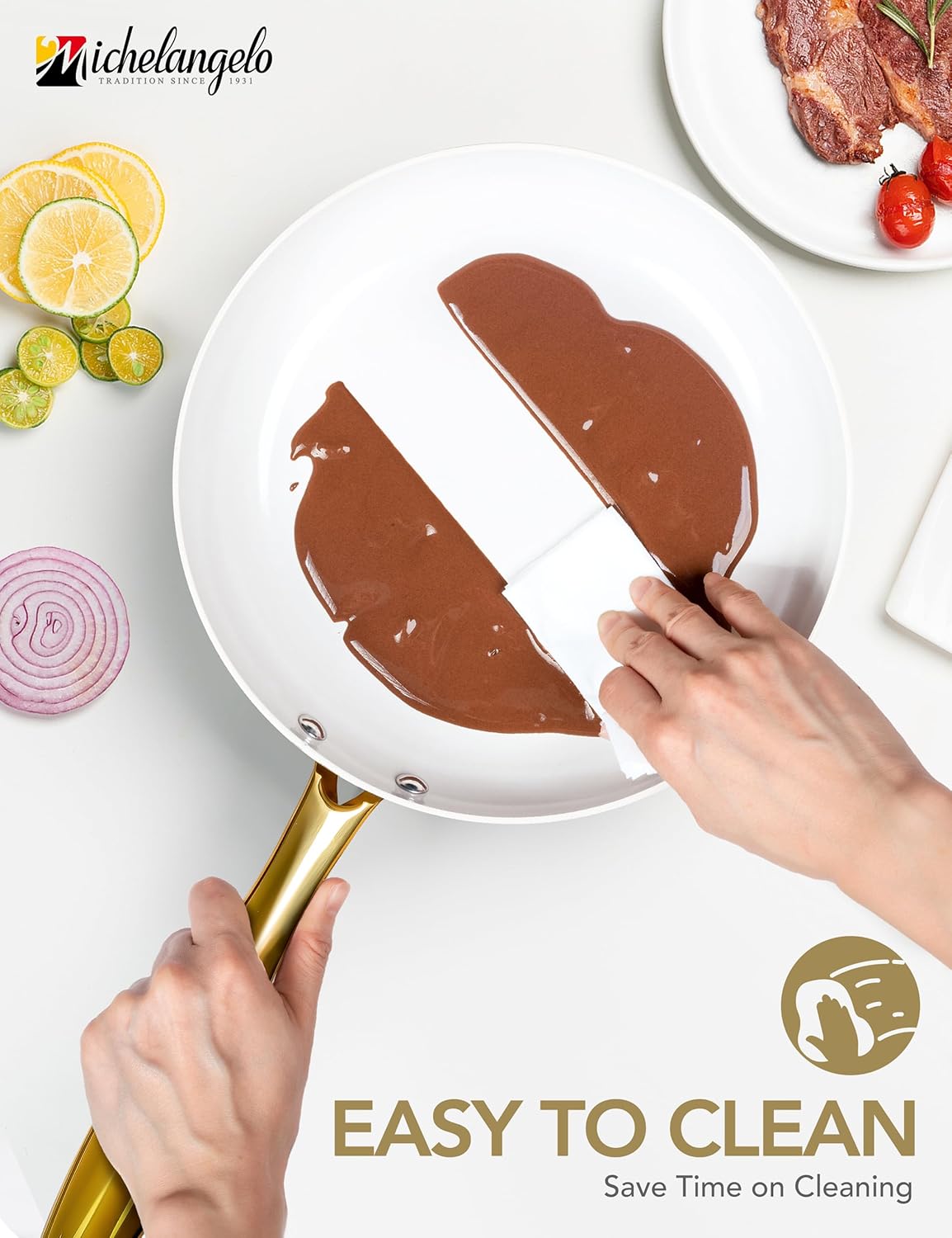 MICHELANGELO Large Frying Pan with Lid, 14 Inch Ceramic Skillet with Non-Toxic Coating, Non Stick Fry Pan with Ergonomic Handle, Induction Compatible