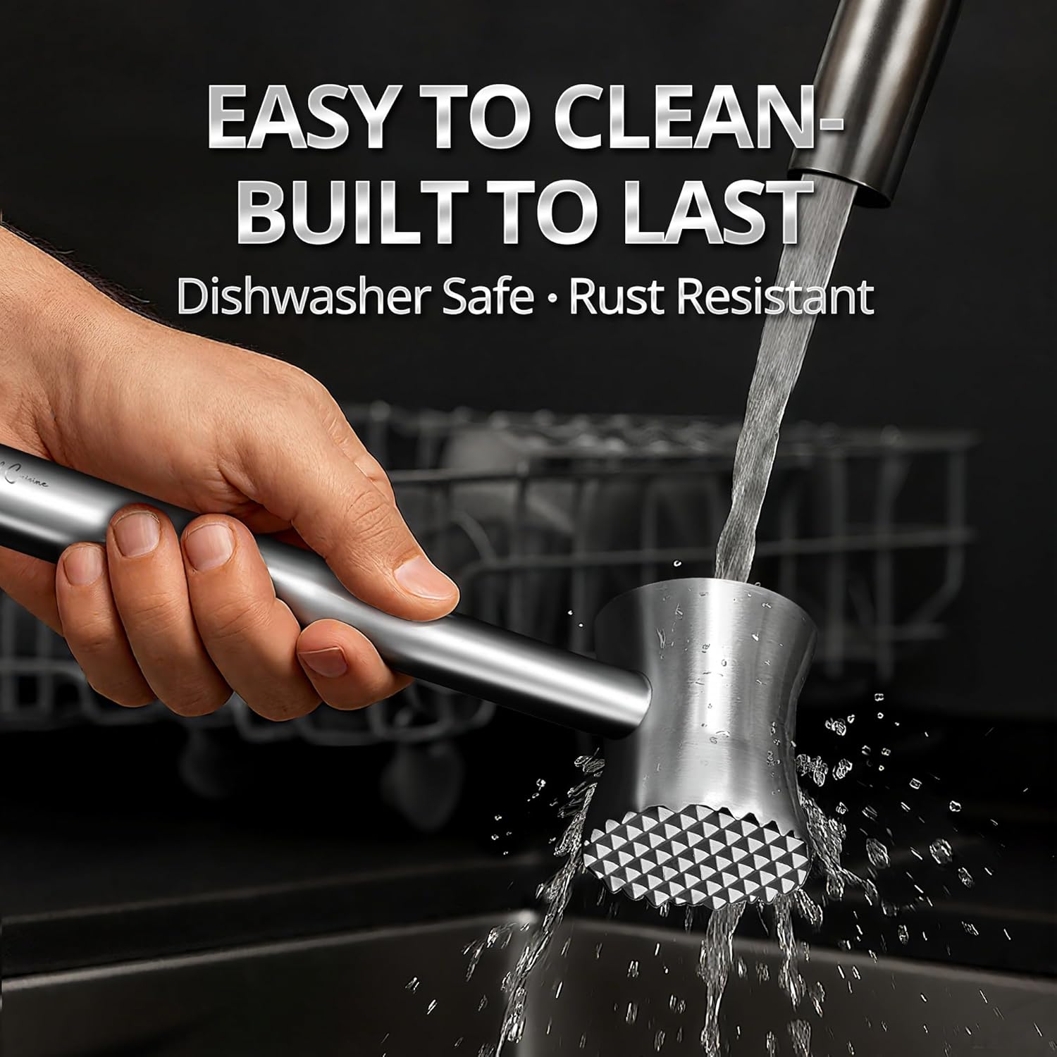 • Sleek & Solid All-Metal Design – Made from premium 304 stainless steel, this meat tenderizer features a unified construction that feels sturdy and well-balanced in hand — rust-resistant, durable, and built to perform.