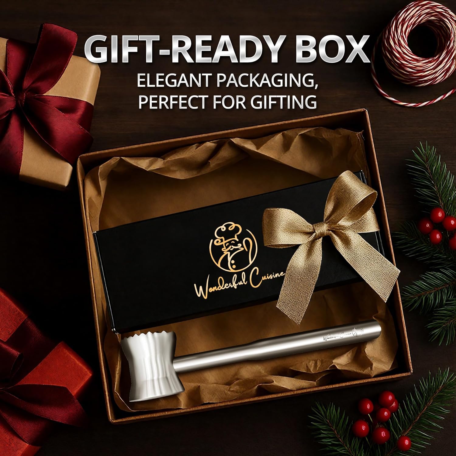 • Multipurpose Kitchen Tool – Perfect for tenderizing beef, pork, poultry — and even crushing garlic, cracking nuts, or flattening cutlets. A go-to tool for home kitchens and BBQ lovers alike.