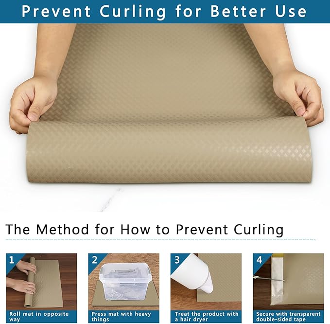 • EASY TO CLEAN AND CUT: Kitchen cabinet drawer mats is washable and waterproof. When the kitchen shelf liner is stained with oil or other dirt, you can easily wipe the dirt with mild soap or a damp cloth and fast to dry. And the cupboard liner has the most popular pre-cut sizes that you can easily cut any shape you want with a scissor or a knife.