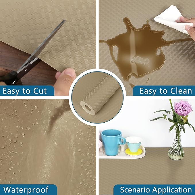 HooTown Kitchen Shelf Liner Drawer Liners, 23.6"W x 78.7"L Non-Adhesive Cabinet Cupboard Liners Refrigerator Waterproof Fridge Mat with Durable Kitchen Cabinet Mat for Drawers, Shelves, Pantry, Khaki