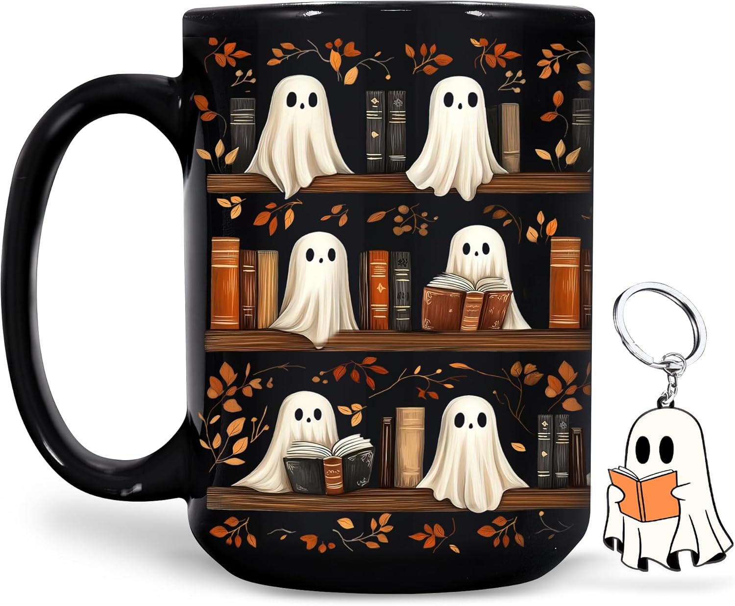 • IDEAL GIFT FOR BOOK LOVERS: Treat yourself or surprise a fellow bookworm with this adorable book ghost mug. Comes with a matching keychain, making it a fun and spooky gift for Halloween, birthdays, Christmas, or any cozy reading moment. Perfect for readers who love coffee, ghosts, and a touch of humor.