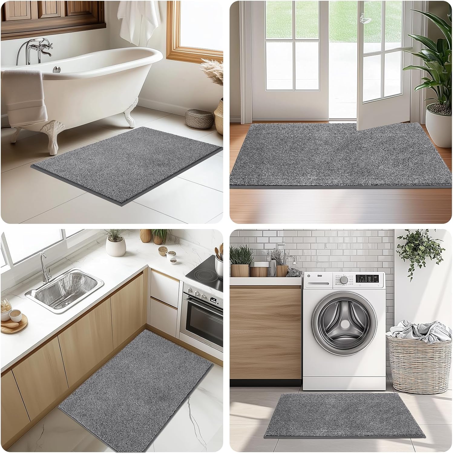 • VERSATILE USE: Designed with reinforced half circle edges, this mat fits easily under low doors and works flawlessly in high-traffic areas: front/back doors, kitchens, Laundry, bathrooms, bedrooms, and more! Great as a pet mat for dogs and cats too!