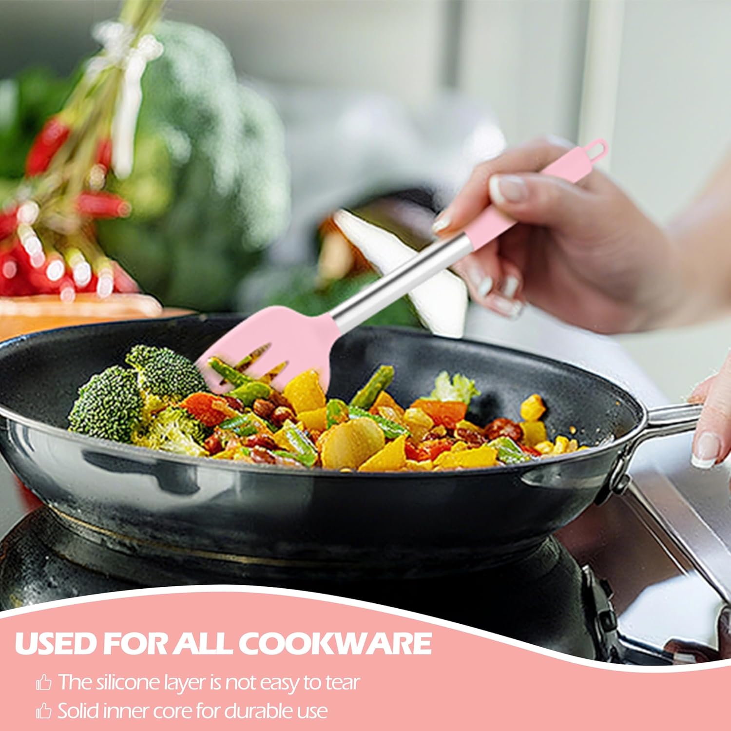 • HEAT-RESISTANT AND NON-SCRATCH: This kitchen utensils set with soft silicone head, withstand high temperatures (up to 450°F), not easy to bend, melt, or wrap when cooking, Anti-scratch to protect the surface of non-stick pans and cookware, extend the life of all your kitchen pots and pans, could meets all you kitchen cooking demands for stirring, baking, frying, boiling etc