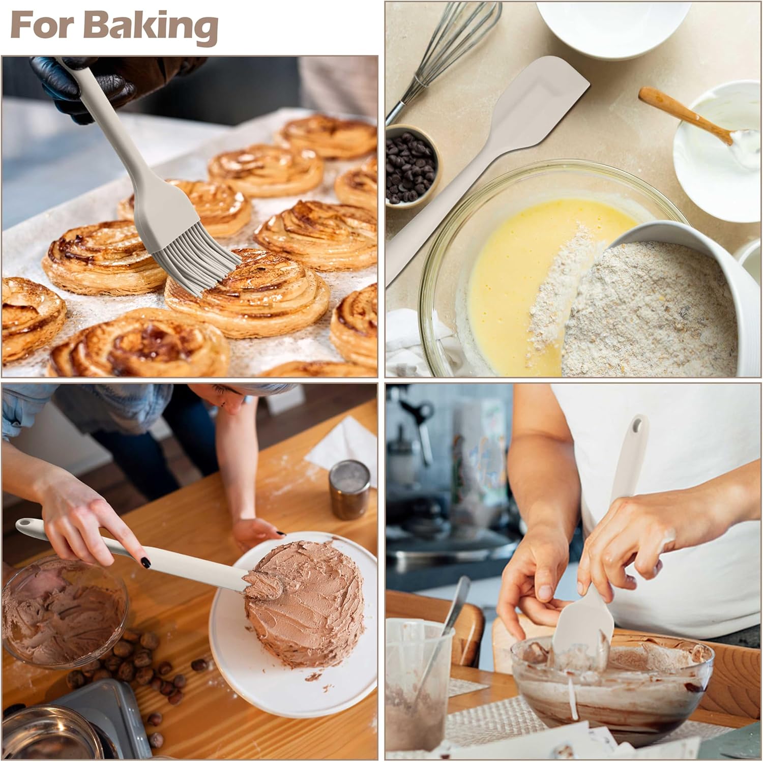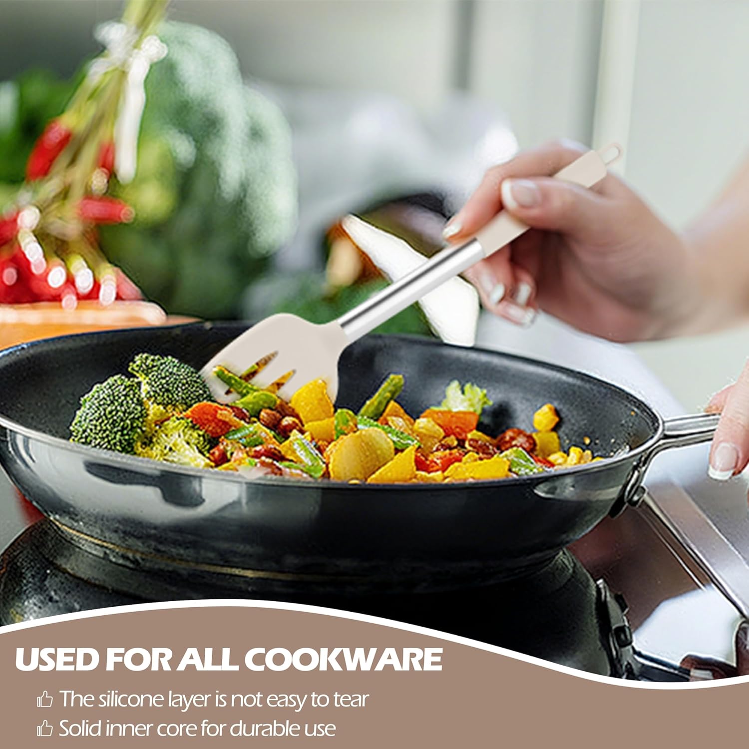• HEAT-RESISTANT AND NON-SCRATCH: This kitchen utensils set with soft silicone head, withstand high temperatures (up to 450°F), not easy to bend, melt, or wrap when cooking, Anti-scratch to protect the surface of non-stick pans and cookware, extend the life of all your kitchen pots and pans, could meets all you kitchen cooking demands for stirring, baking, frying, boiling etc