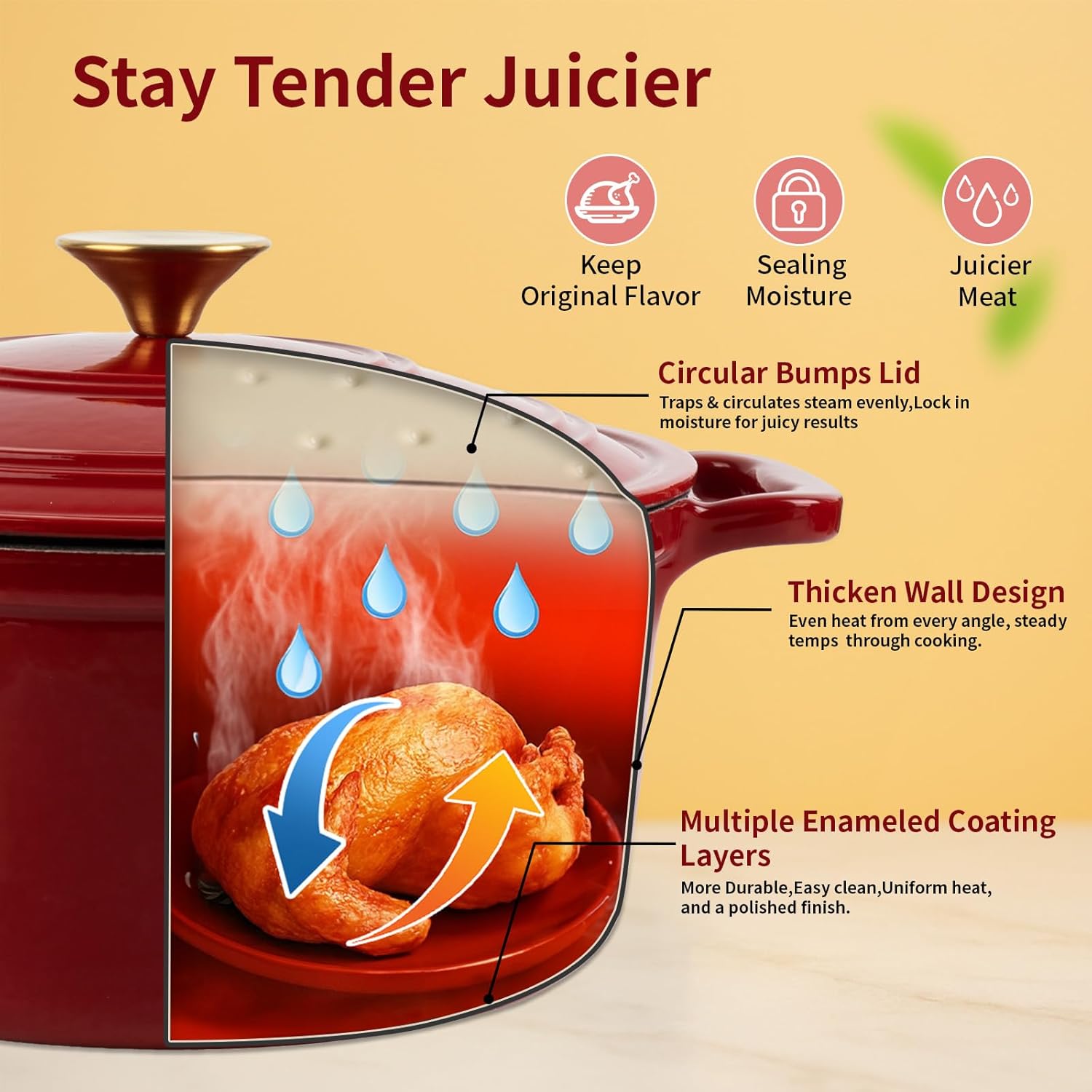 • 【Elegant Design Meets Everyday Utility】Glossy enamel finish in vibrant red elevates your kitchen décor, while the pot transitions beautifully from cooking to serving. Perfect for family meals, holiday feasts, and gourmet creations.