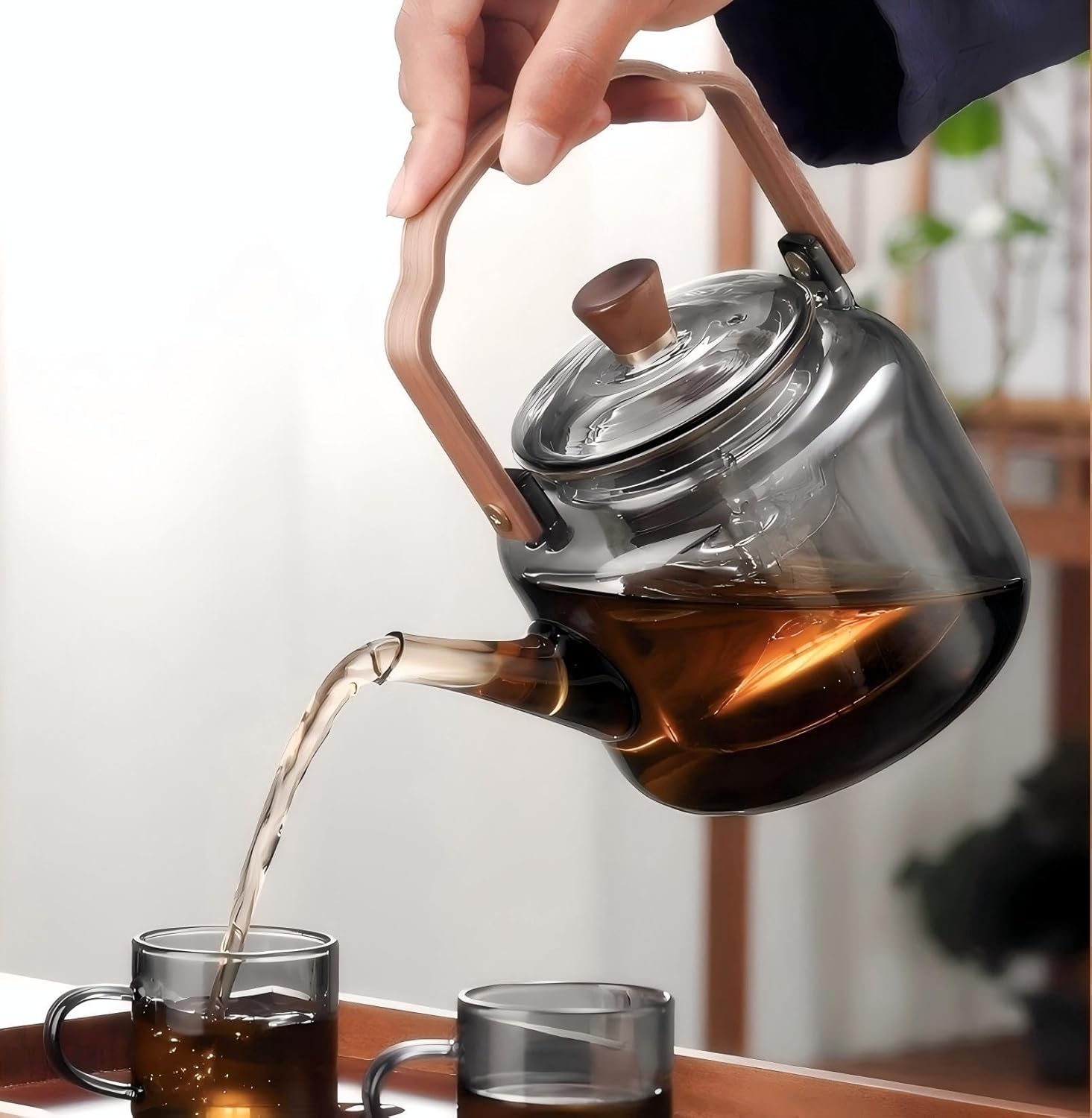 • DESIGN: Elegant transparent design with wooden handle and lid knob, allowing you to watch your tea steep to desired strength