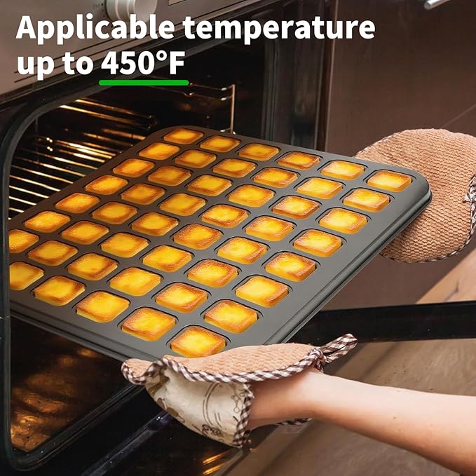 • Even Heat Distribution --- The 48-tiny-cup muffin pan ensures even heat distribution, which is key for consistent baking results. Its high-quality construction helps heat spread evenly across the pan, so your muffins bake uniformly, with a consistent texture and appearance. Please note, the pan is safe to use at temperatures up to 230℃ (446℉).
