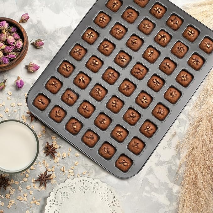 • A Great Choice for Baker Friend --- This 48-tiny-cavity muffin pan features a stylish and elegant design that complements any kitchen décor or baking theme. Its attractive color makes it suitable for both formal and casual occasions. Plus, its design allows you to present your baked goods beautifully, whether on a dessert table, buffet, or in a bakery display case.