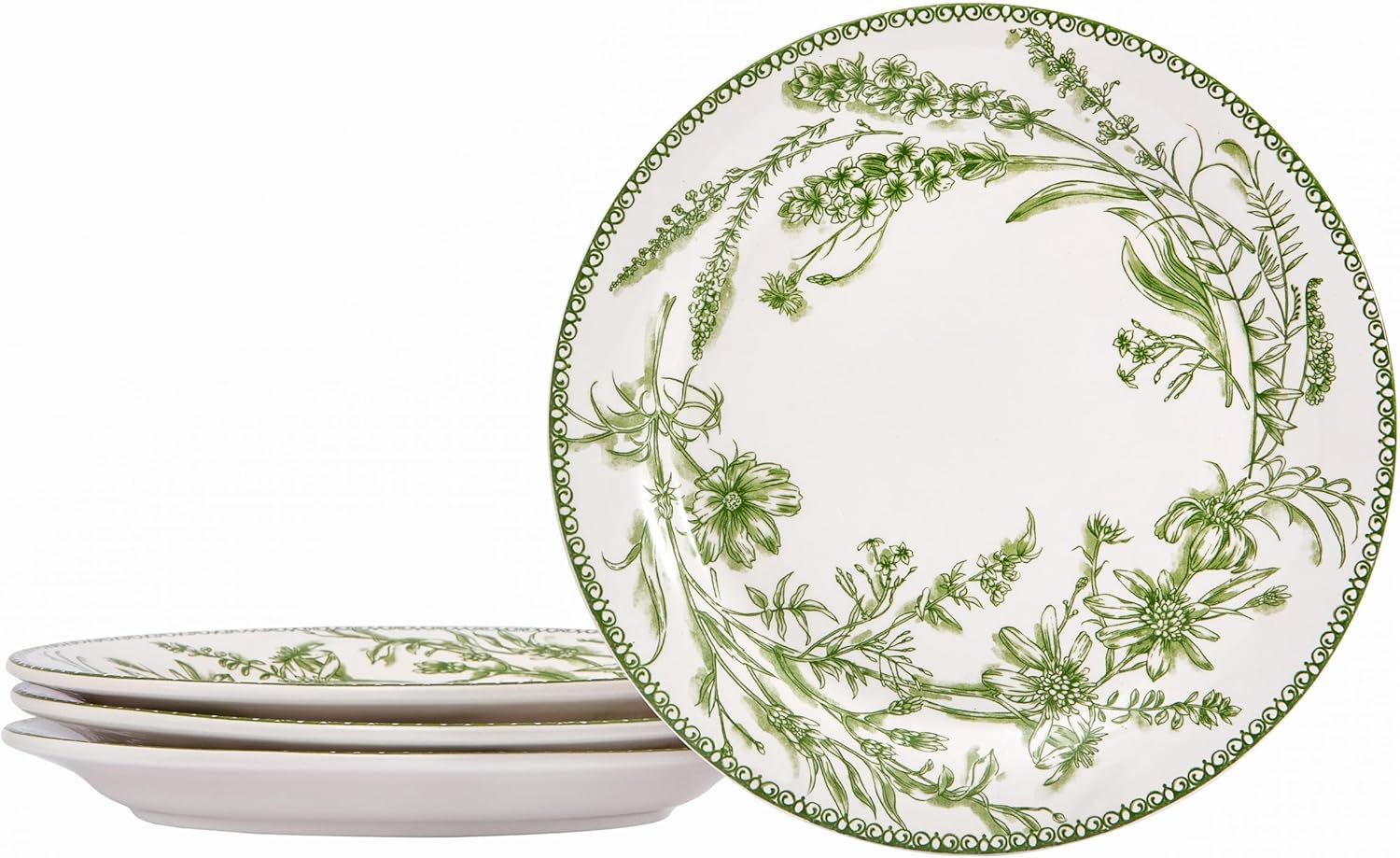 Bico Green Garden Toile De Jouy Dinner Plates Set of 4, 11 Inch Large Ceramic Plates for Pasta, Steak, Stylish Serving Dishes, Microwave and Dishwasher Safe, Gift for Housewarming and Thanksgiving