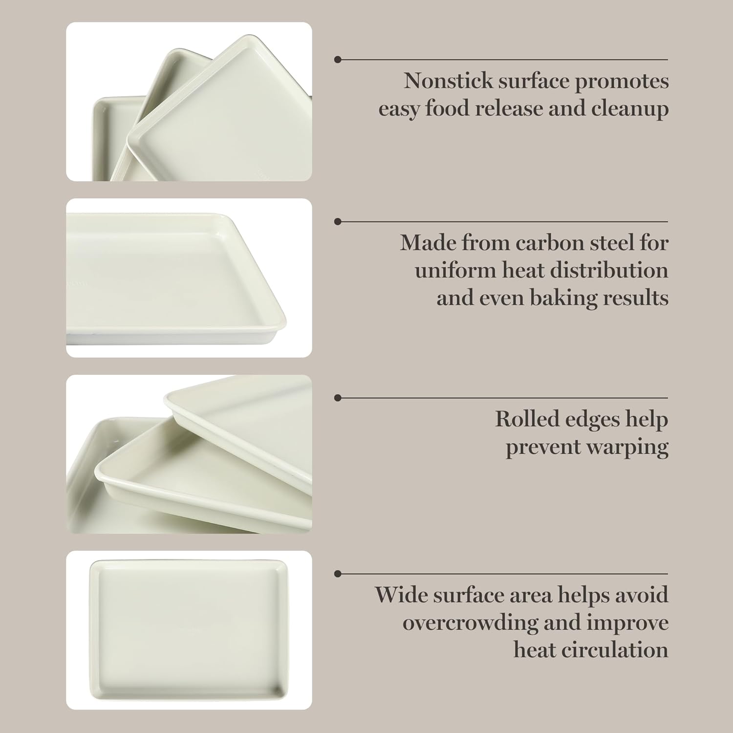 Martha Stewart Gallen 3-Piece Cookie Sheet Set – 13", 15", 17" Baking Pans, Ceramic Nonstick, PFA-Free, Carbon Steel – Oven Safe to 450°F, Warp-Resistant, Easy to Clean - Linen White