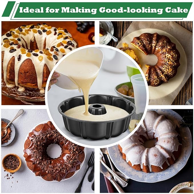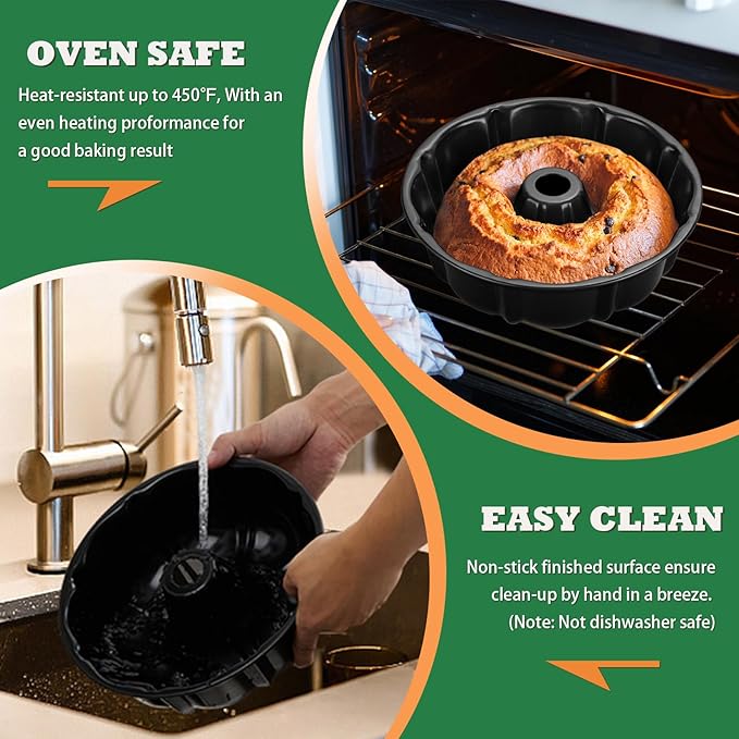 • 【Non-Stick, Easy Clean】Fluted tube pan’s interior and exterior are covered with healthy non-stick black coatings, Cakes would be come out nicely without leftover residue, No food sticking to anywhere during long baking and will resist your cake burning, Always make cleaning in a breeze, Just use soft cloth to wash the pan under warm soapy water, But please do not use steel wool to avoid scratching the non-stick surface, Hand-wash recommended