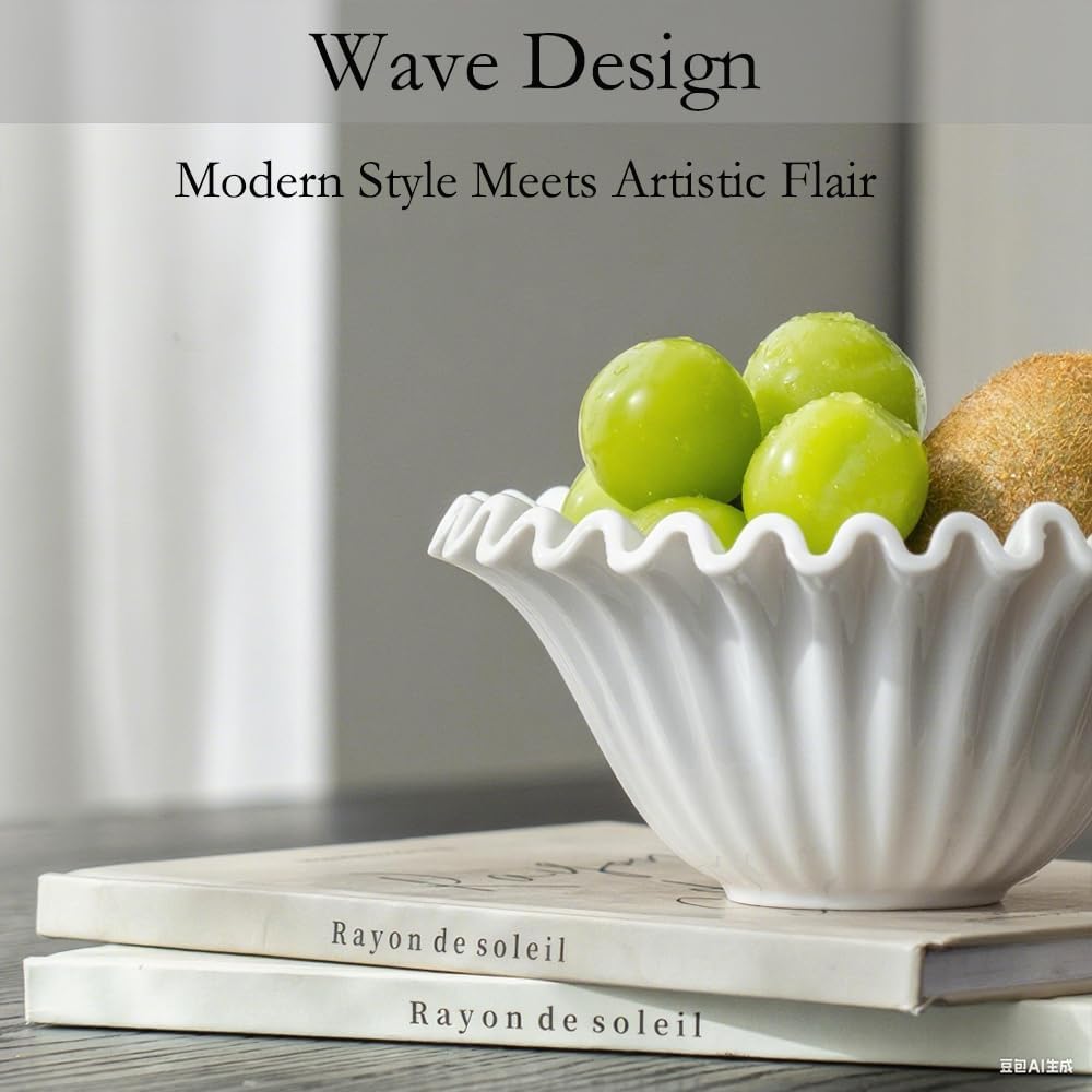 • Elegant Wave Edge: Featuring meticulously crafted layered wave edge, this serving bowl boasts an elegant, intricately detailed design. It adds modern artistic flair to any space and complements various interior styles
