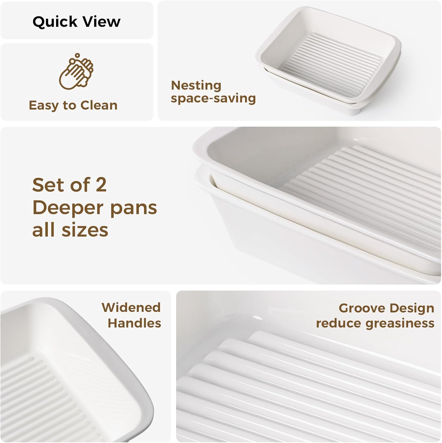 • 【Unique Groove Design】 Our ceramic baking dish features a unique groove design that helps reduce greasiness, allowing you to cook delicious, healthier, and crispier meals that release easily from the dish.