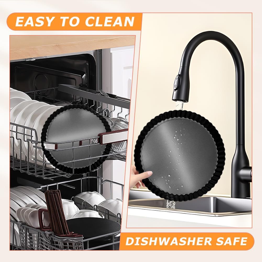 • 【Versatile Usage】Our tart pan is safe for use in the oven and refrigerator, with a temperature range from -104°F to 445°F for even heating. It is non-corrosive, stain-resistant, and dishwasher-safe for easy maintenance.